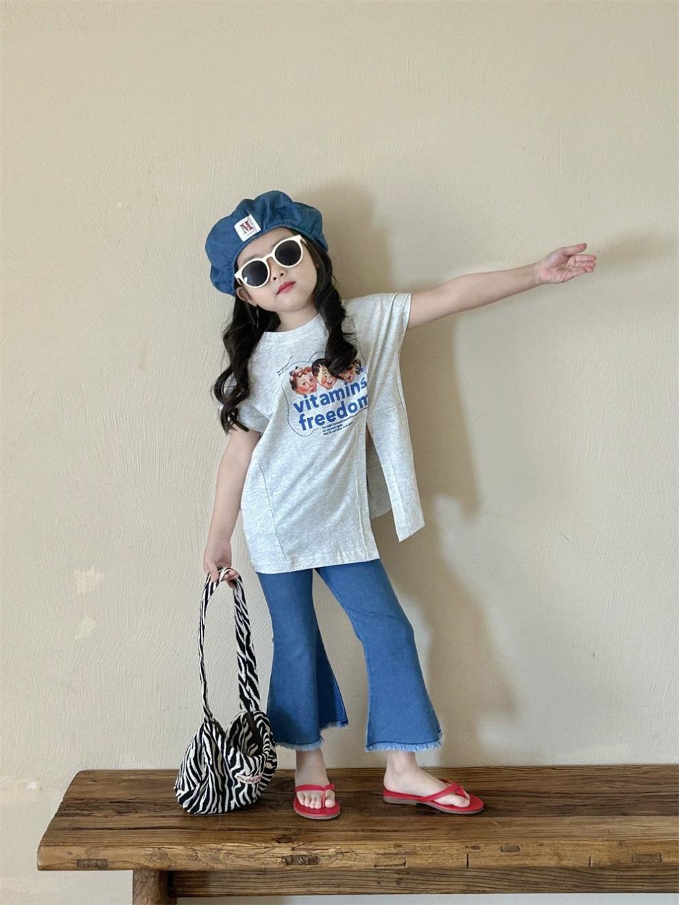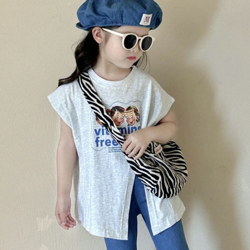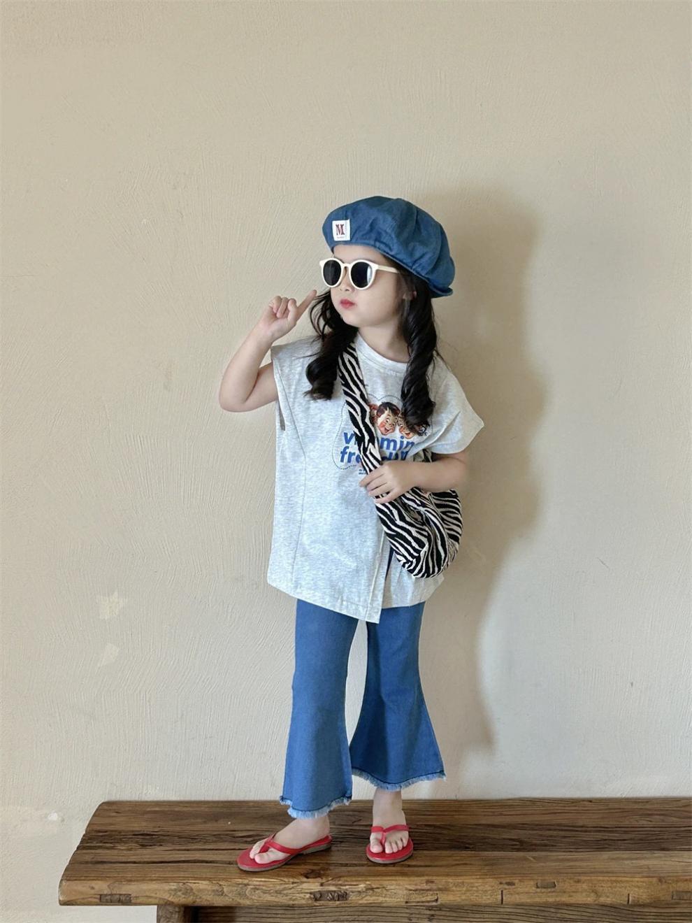 소녀 2025 여름 새로운 도착 세트 어린이 한국 캐주얼 티셔츠 아기 스타일 느슨한 분할 짧은 소매