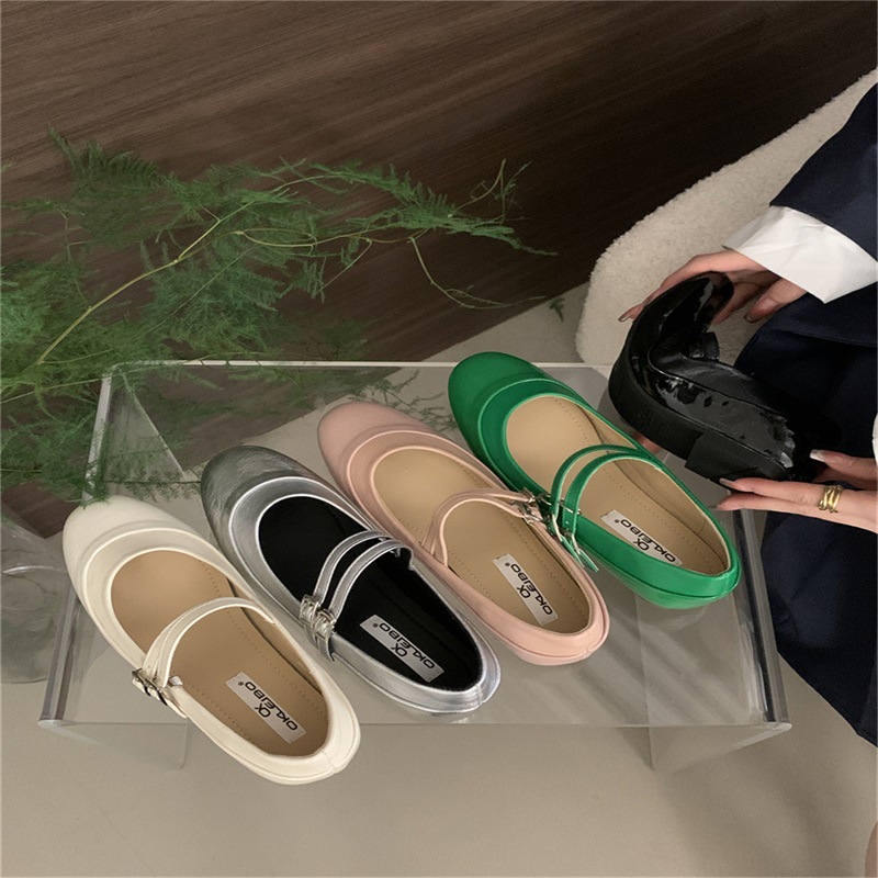 한국형 특허 가죽 핑크 메리 제인 신발 여성 내부 높이 증가 싱글 레이어 신발 우아한 레트로 이브닝 신발 작은 가죽 신발스토어 가기