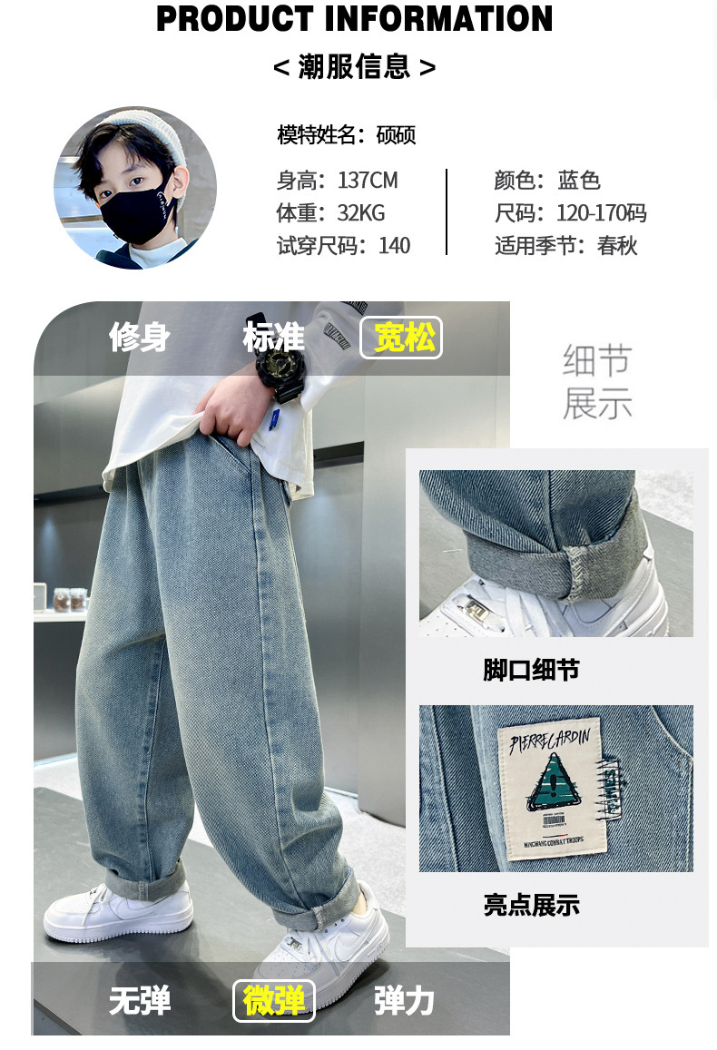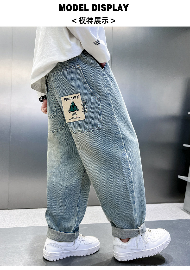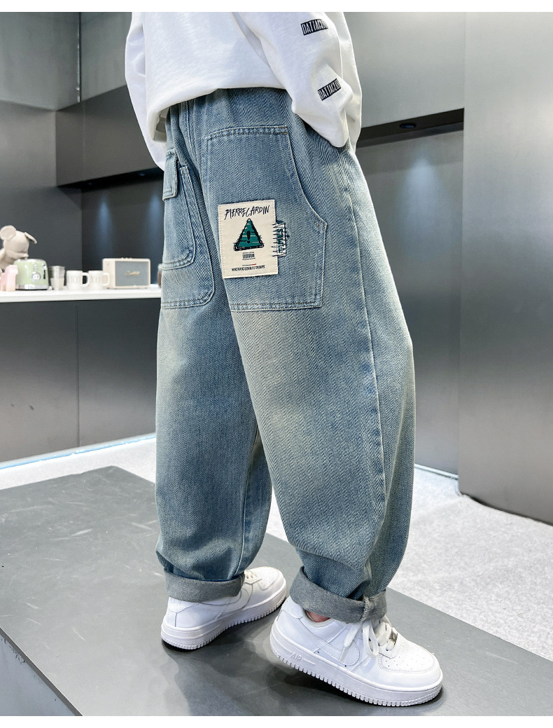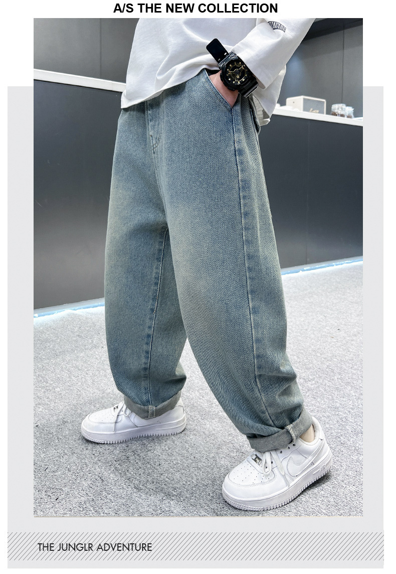 소년의 부드러운 청바지 여름 새로운 2025 새로운 어린이 스트레이트 루즈 루피 안 핸섬 스타일 여름 트렌디 쿨 바지스토어 가기