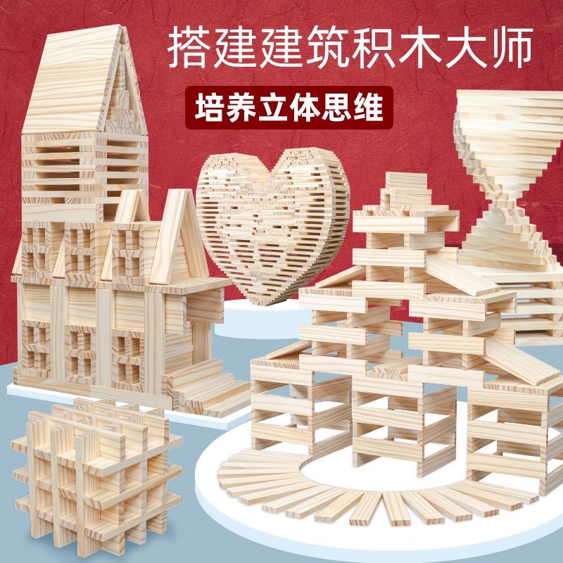 쌓인 높은 건물 블록 나무 조각 긴 아르키메데스 빌딩 블록 유치원 로그 래커 빌딩 블록 쌓인 나무 조각 퍼즐스토어 가기