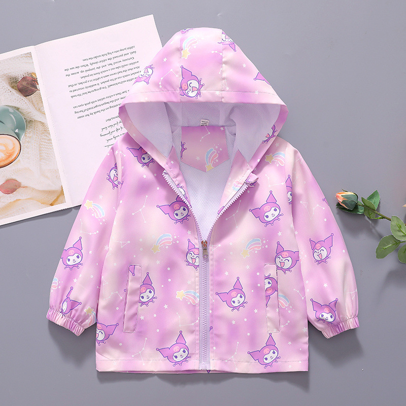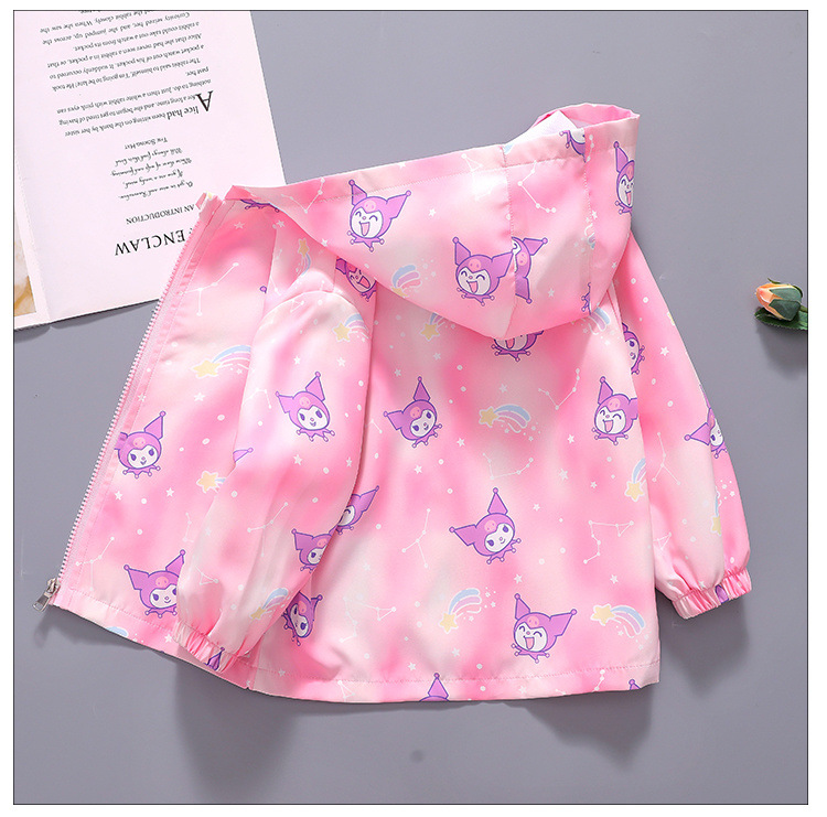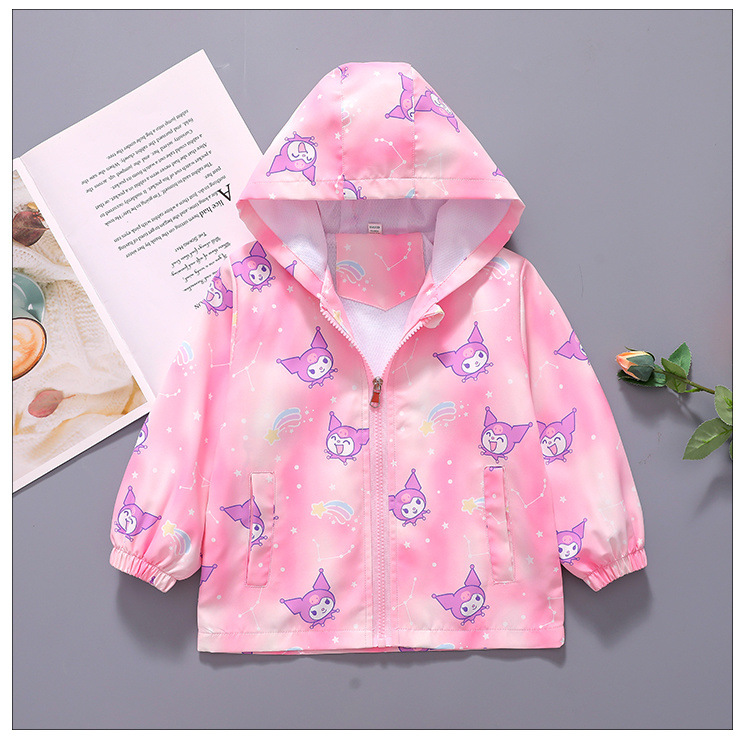 소녀의 봄과 가을 2025 새로운 어린이 방풍 후드 재킷 어린 소녀의 세련된 코트 아기의 만화 탑스토어 가기