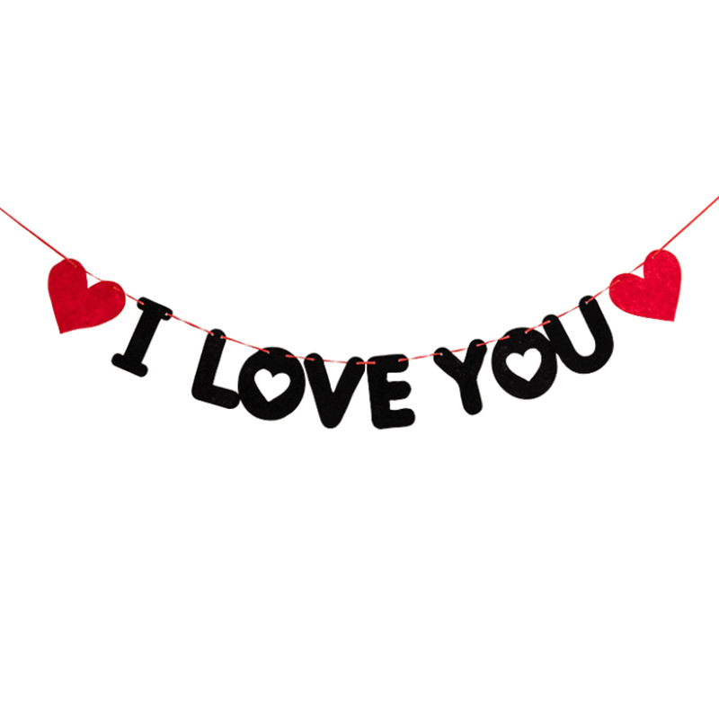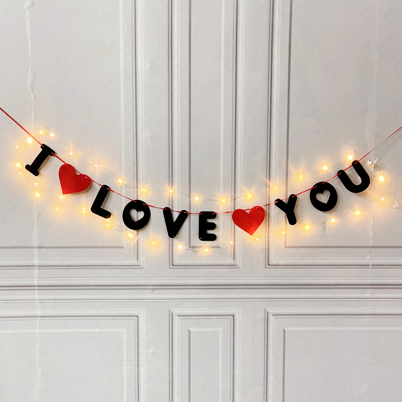 • I LOVE YOU 검정색 풀 플래그*1+ 3m 따뜻한 흰색 구리 와이어 램프*2