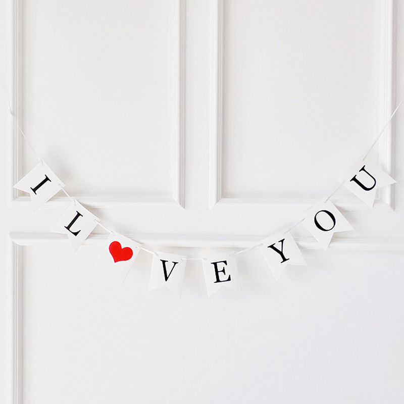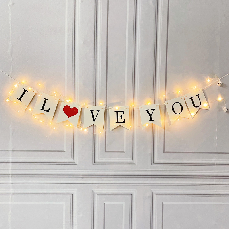 • I LOVE YOU 흰색 깃발*1+ 3m 따뜻한 흰색 구리선 램프*2