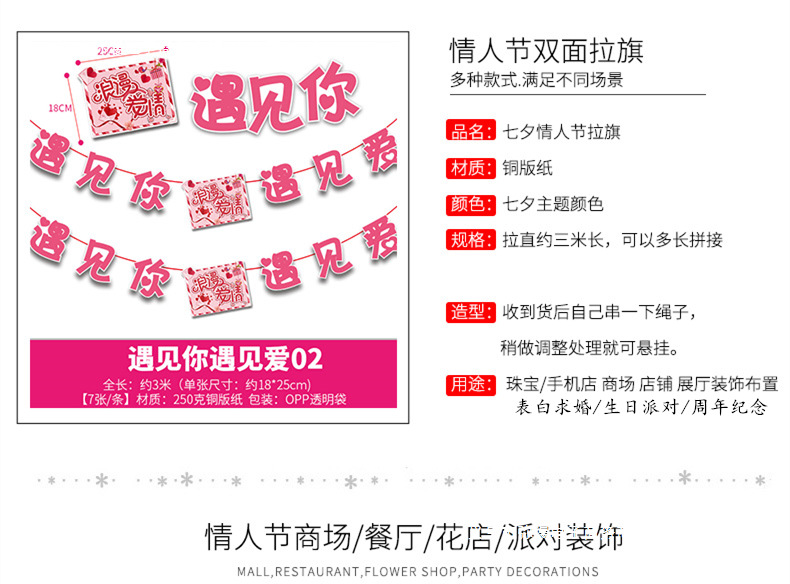 Tanabata 발렌타인 데이 장식 쇼핑몰 서프라이즈 트렁크 장식 낭만적 인 제안 고백 매달려 장식 깃발스토어 가기
