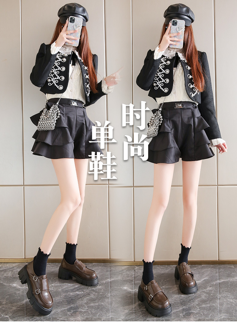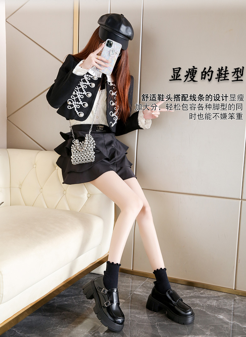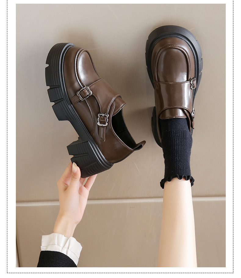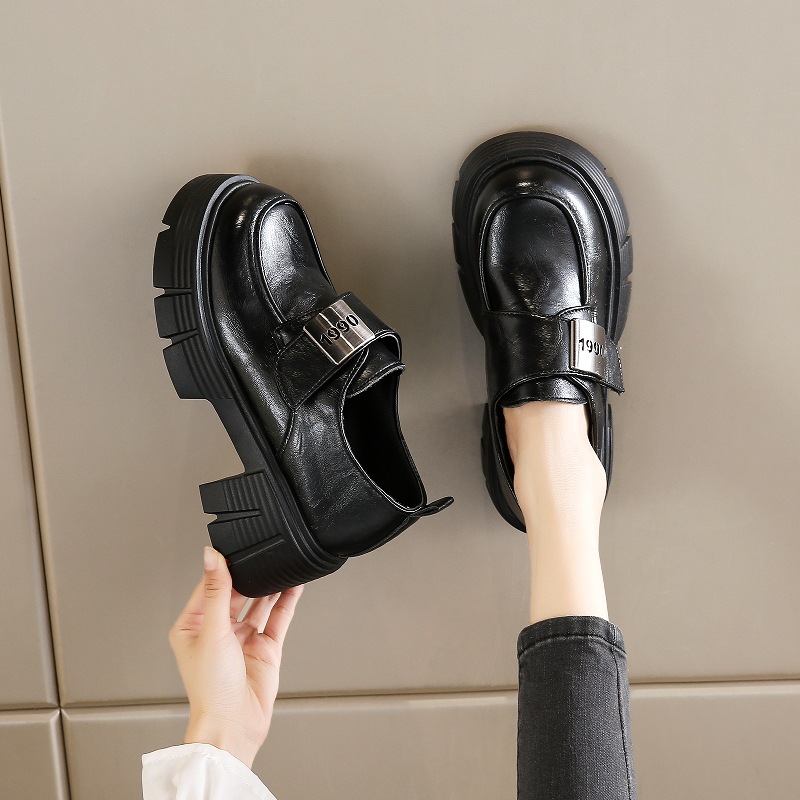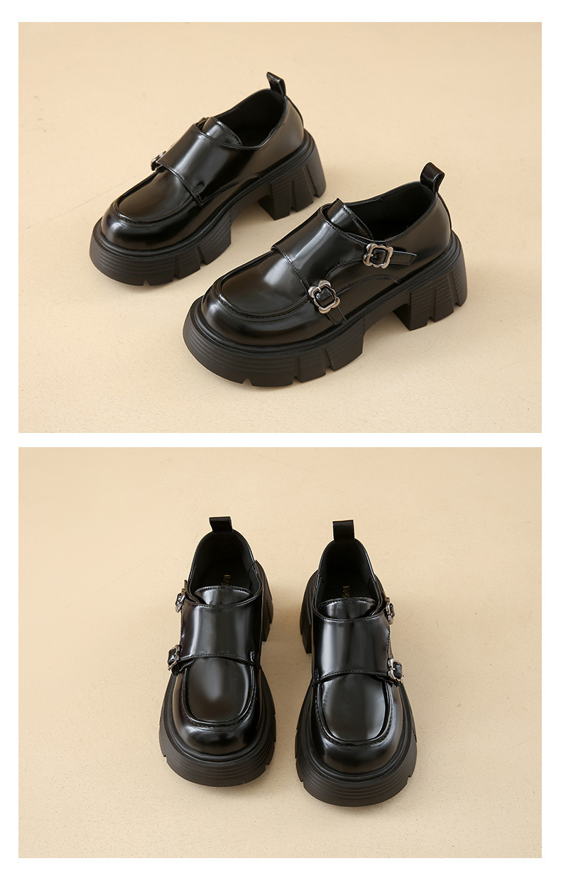여성을위한 작은 두꺼운 굽 로퍼 2025 봄 새로운 둥근 발가락 두꺼운 밑창 버클 Loli JK 작은 가죽 신발스토어 가기