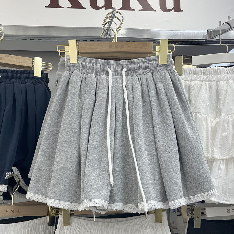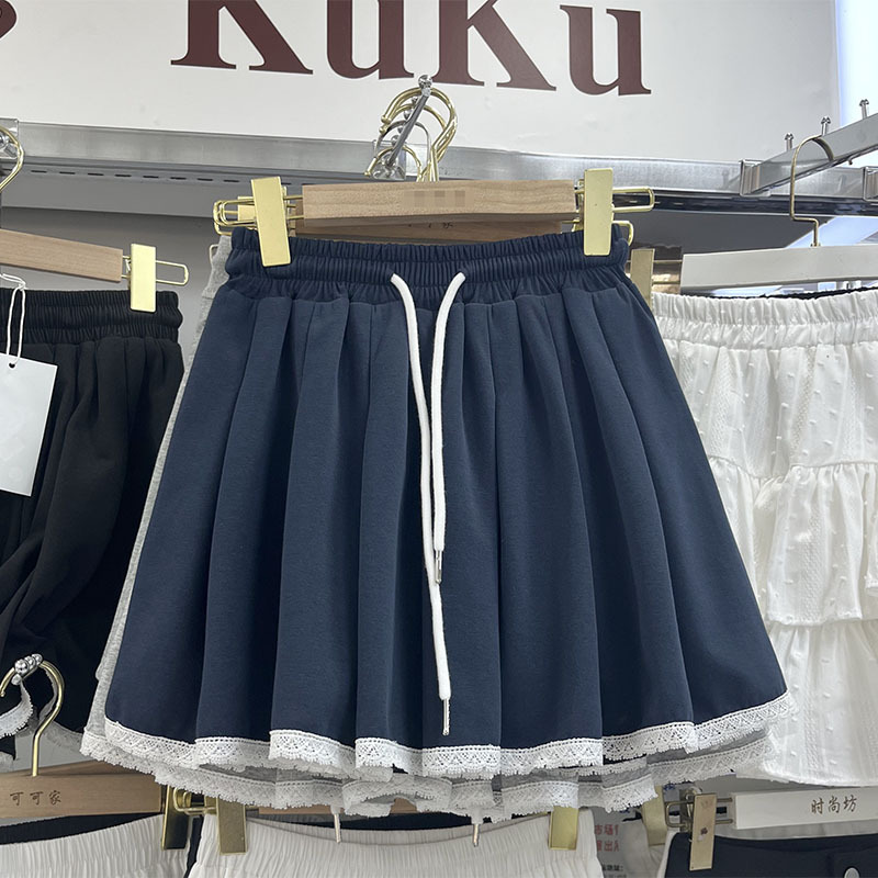 달콤한 스타일 레이스 바느질 주름 치마 여성 여름 작은 나이 감소 슬리밍 A 라인 스커트 공주 치마스토어 가기