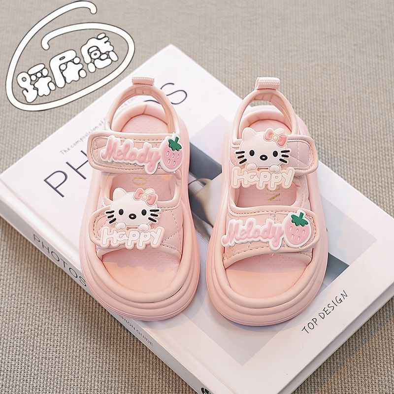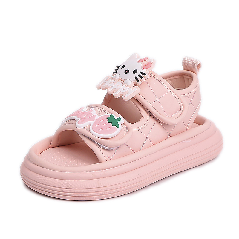어린이 핑크 샌들 여자 신발 올매치 2025 여름 인터넷 기념 여름 요정 서양식 여성