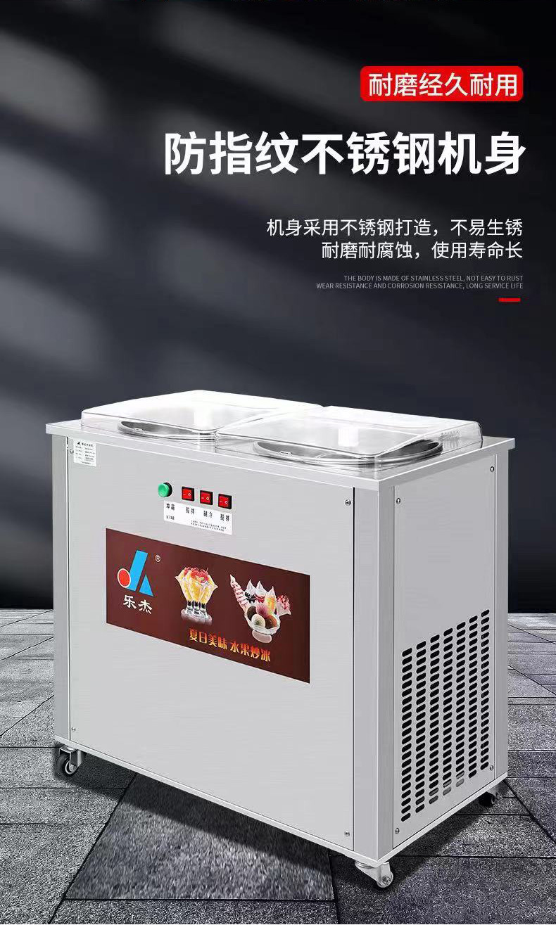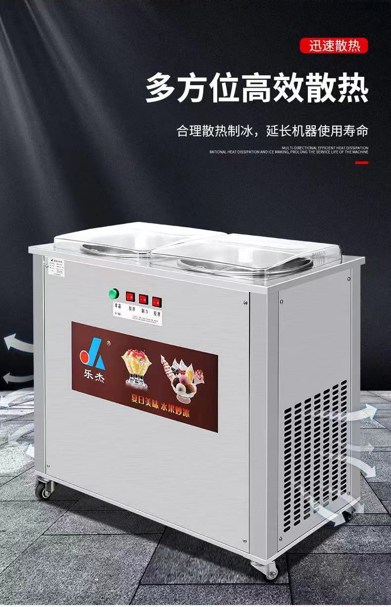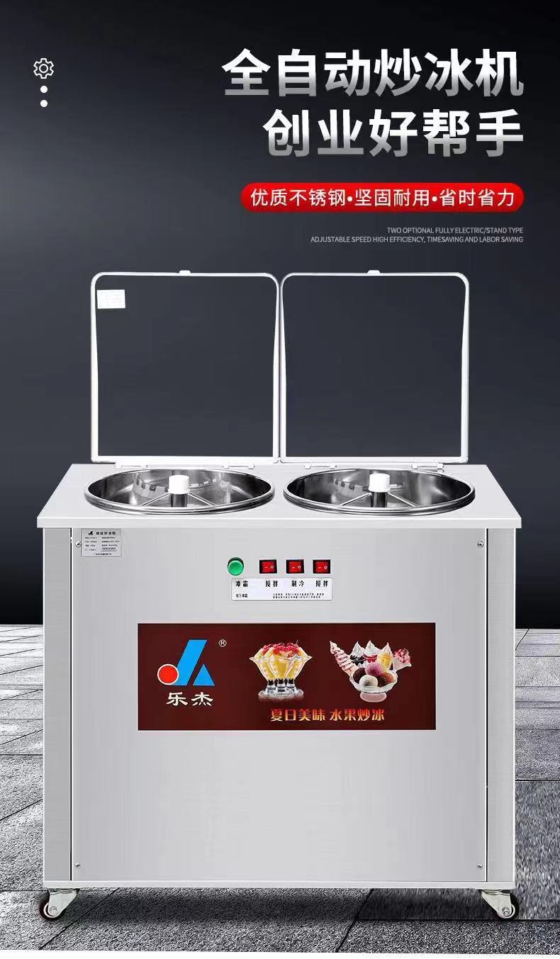 Lejie LJZ200-2 완전 자동 이중 실린더 팬 아이스 프라이팬 기계 상업 야시장은 두꺼운 절단 및 프라이팬 요구르트 눈송이 치즈 기계