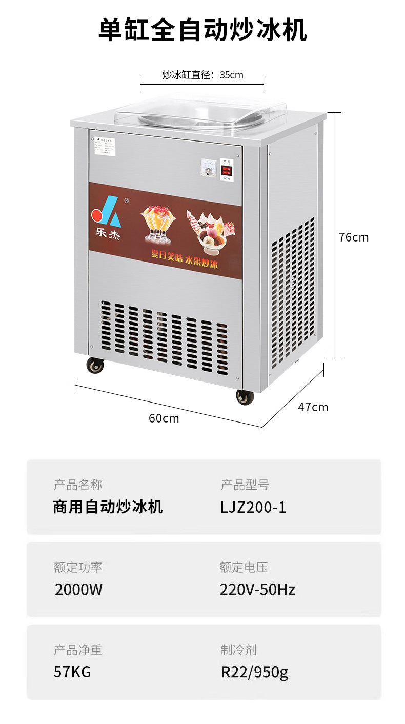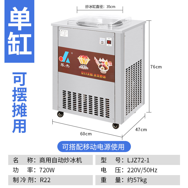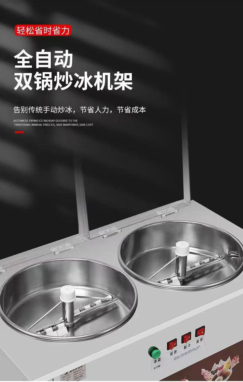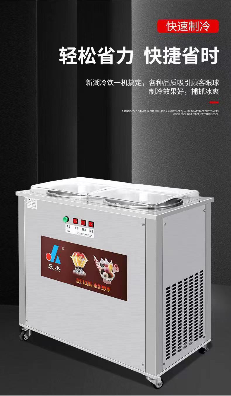 Lejie LJZ200-2 완전 자동 이중 실린더 팬 아이스 프라이팬 기계 상업 야시장은 두꺼운 절단 및 프라이팬 요구르트 눈송이 치즈 기계