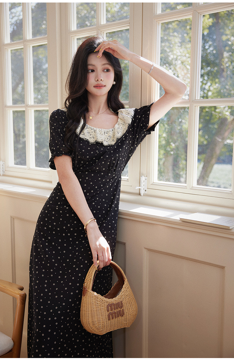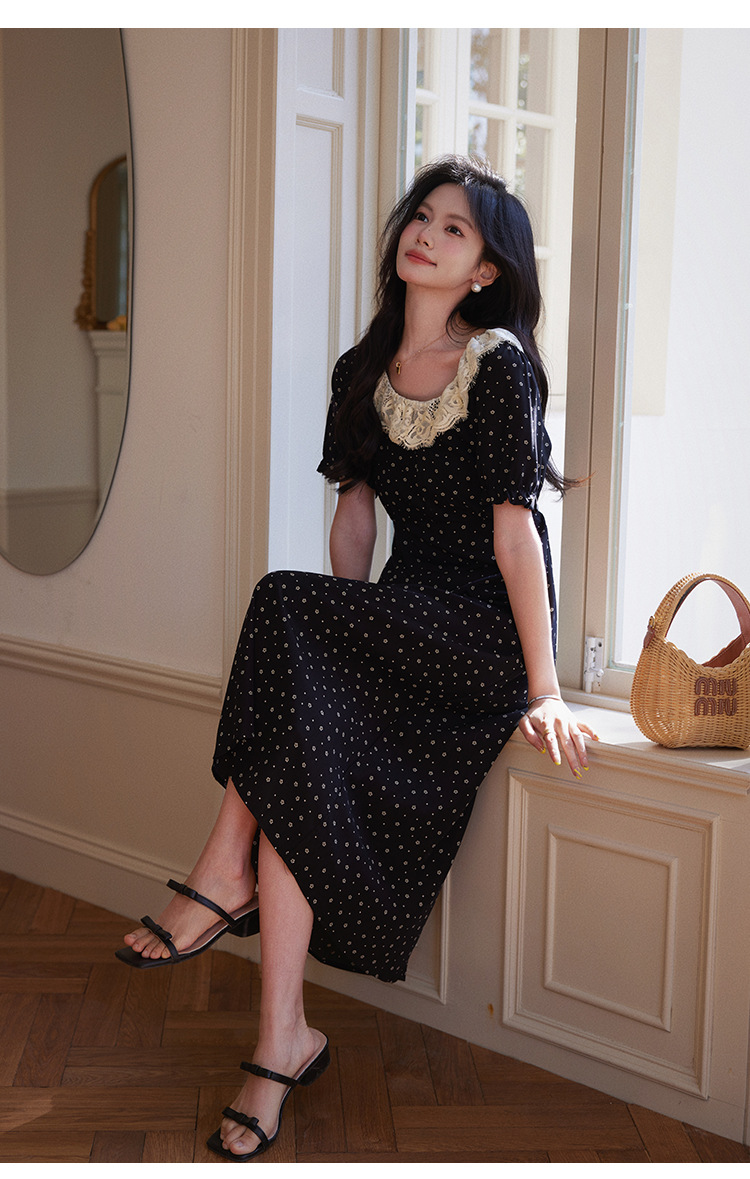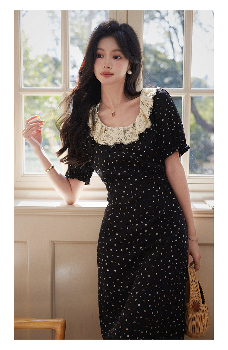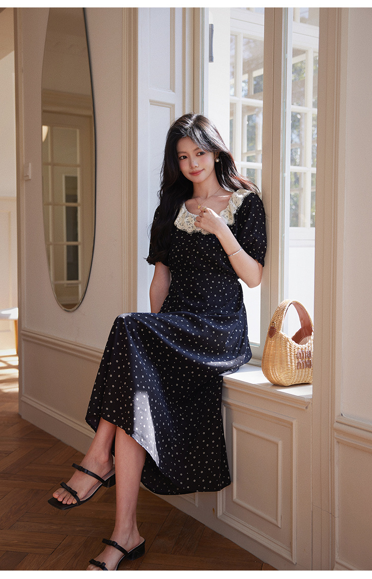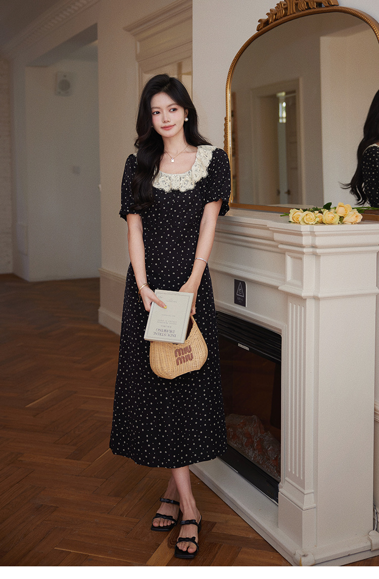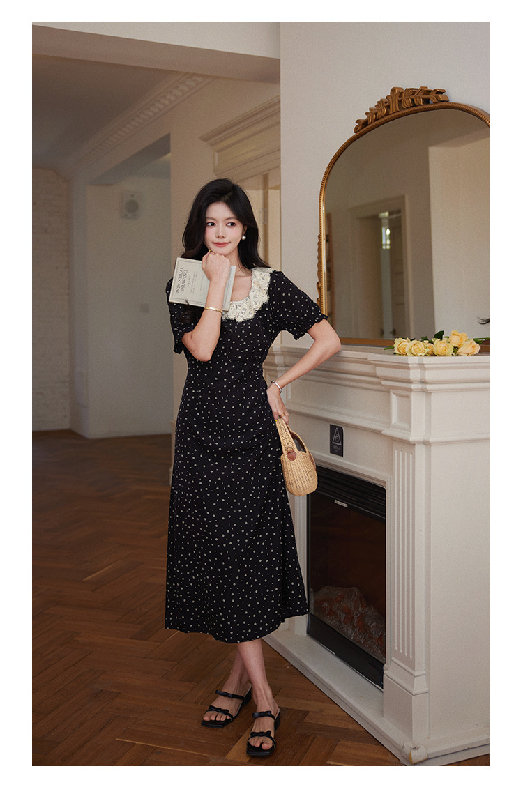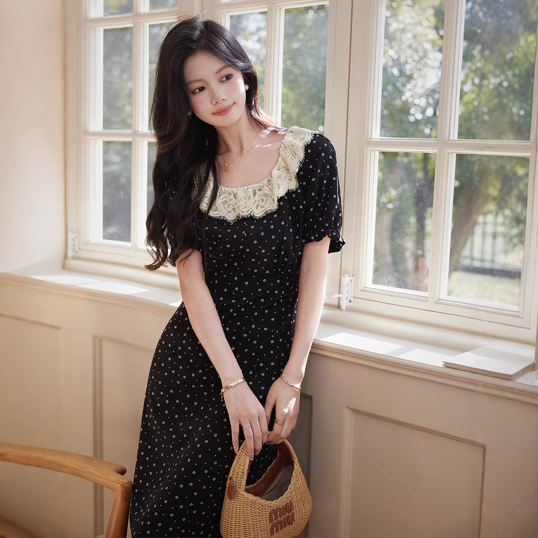 검은 꽃 원피스 여성의 여름 2025 새로운 슬림 뚱뚱한 소녀 프랑스 원피스 슬리밍 스커트스토어 가기