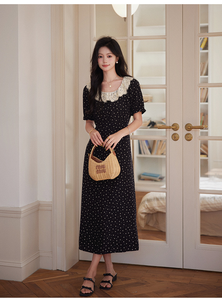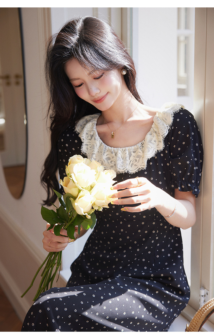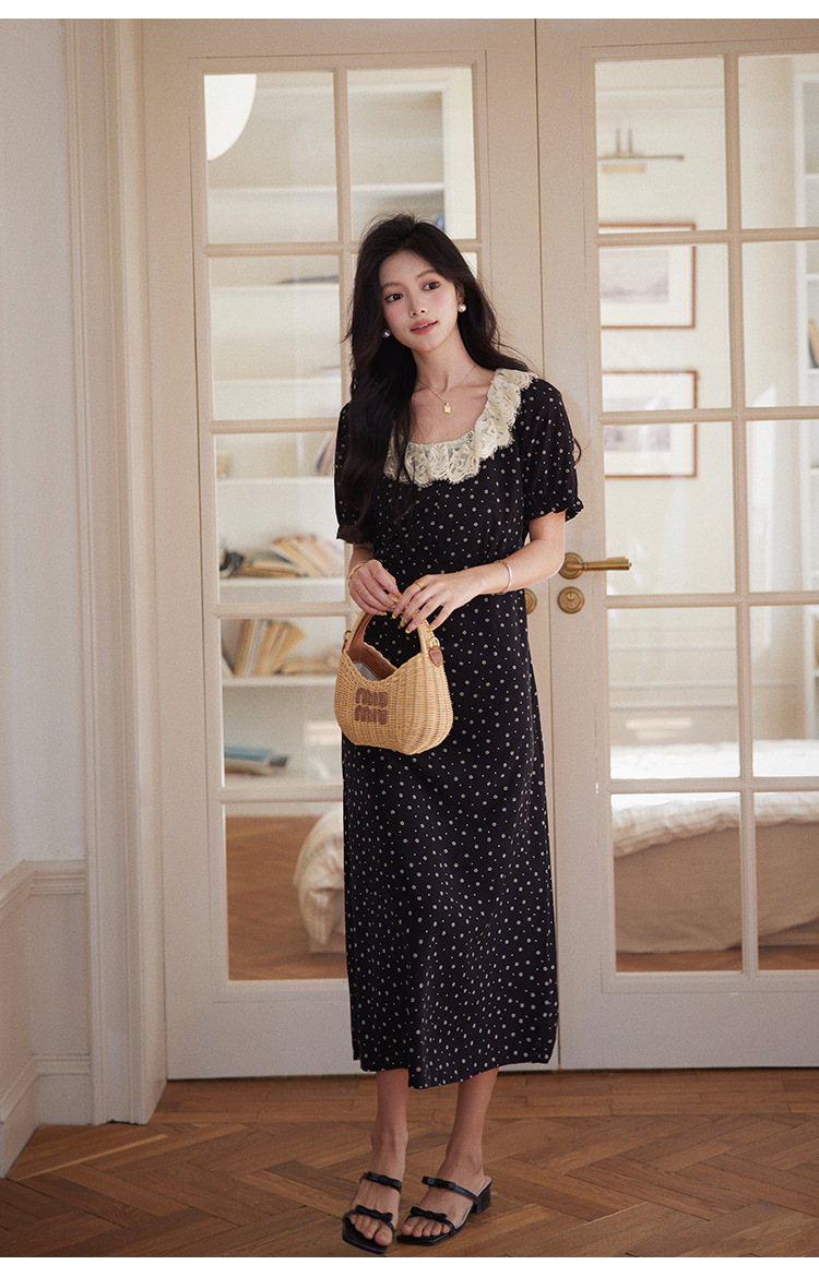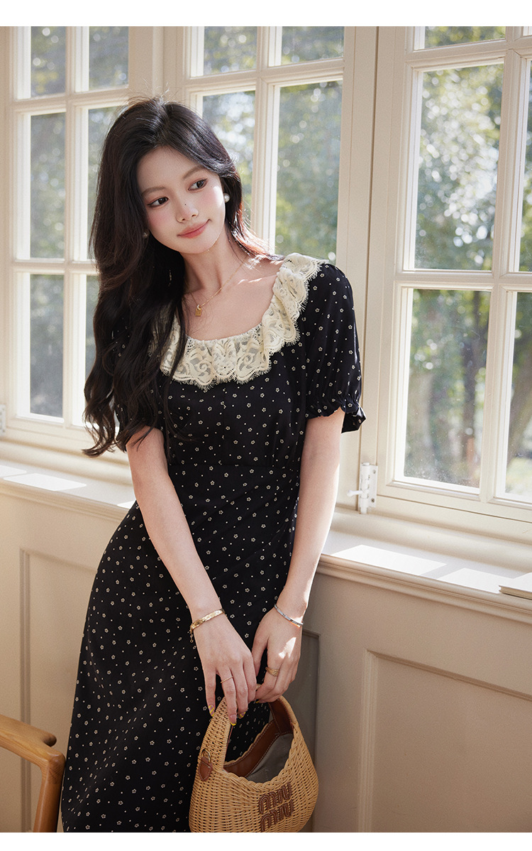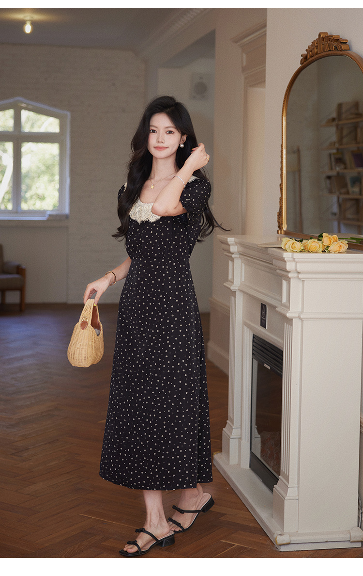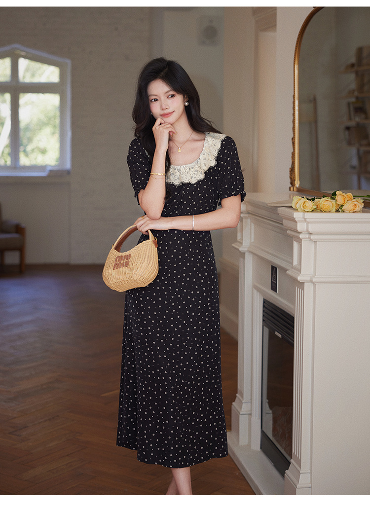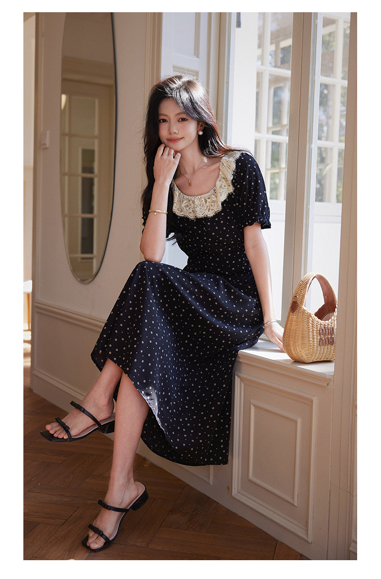 검은 꽃 원피스 여성의 여름 2025 새로운 슬림 뚱뚱한 소녀 프랑스 원피스 슬리밍 스커트스토어 가기