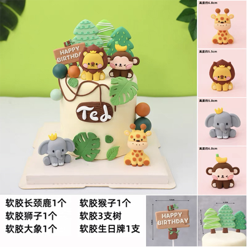 자오항 동물 원숭이 부드러운 접착제 숲 케이크 장식 새로운 스타일 사자 열대 기린 인형 작은 코끼리스토어 가기