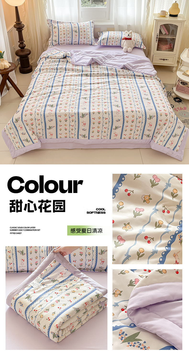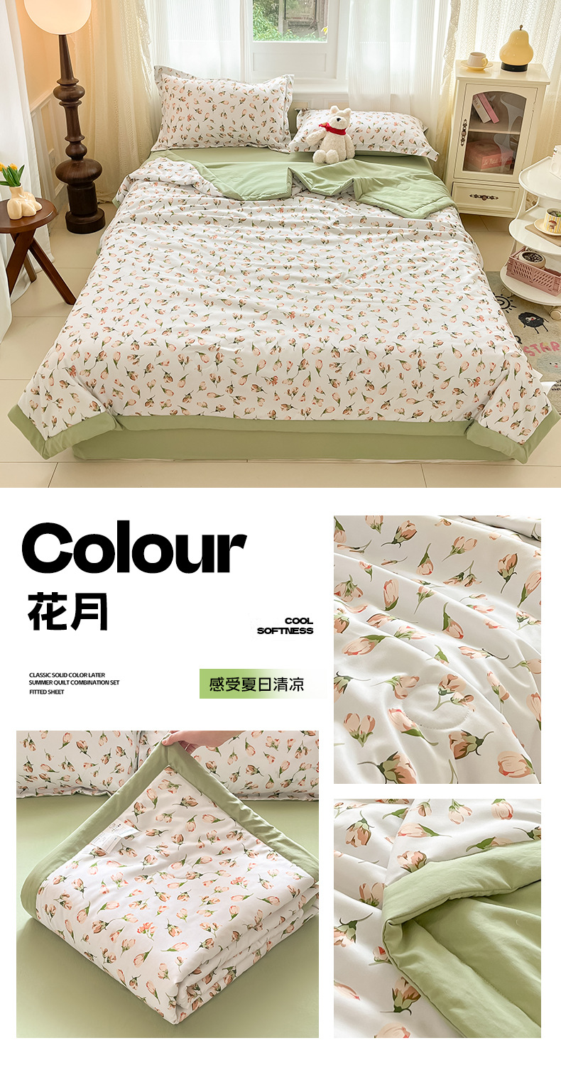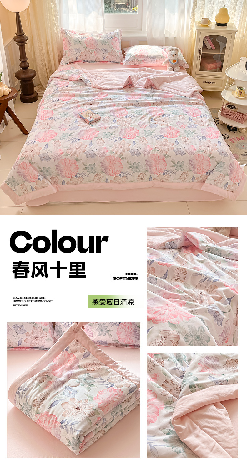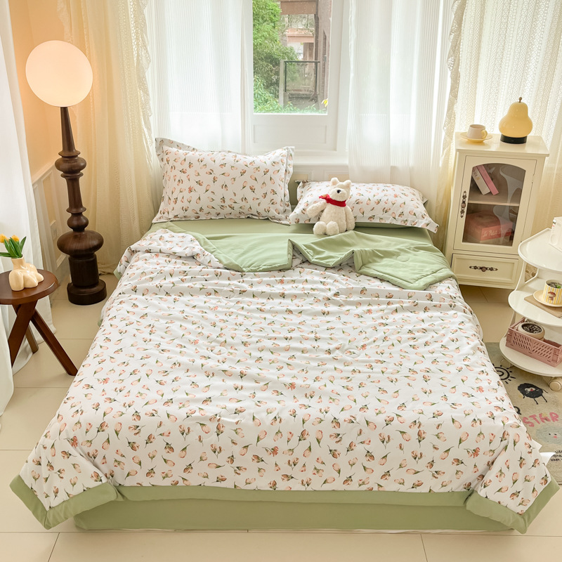 선물 도매 작은 신선한 세척면 여름 시원한 이불 에어컨 이불 인쇄 싱글 여름 이불 학생 기숙사 싱글 침구