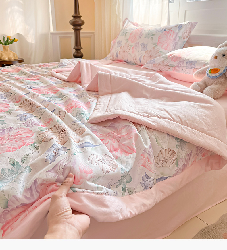선물 도매 작은 신선한 세척면 여름 시원한 이불 에어컨 이불 인쇄 싱글 여름 이불 학생 기숙사 싱글 침구스토어 가기