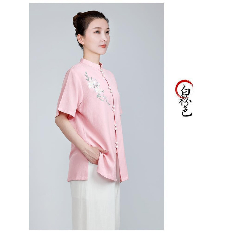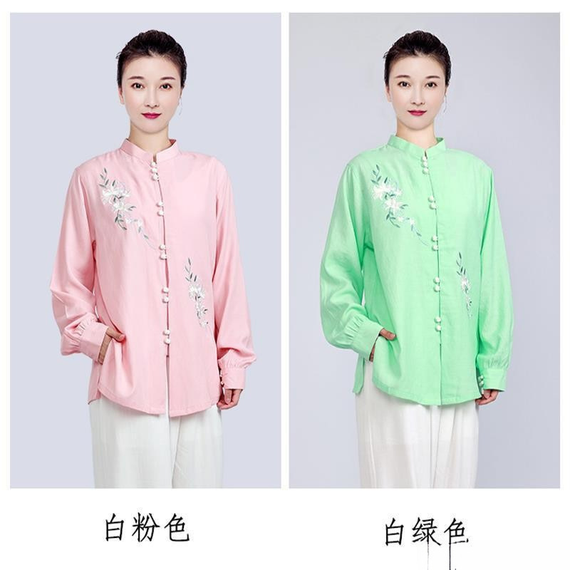 도매 태극권 의류 여성 신면 및 리넨 태극권 연습 의류 여성 여름 의류 봄 및 가을 Baduanjin 무료 배송