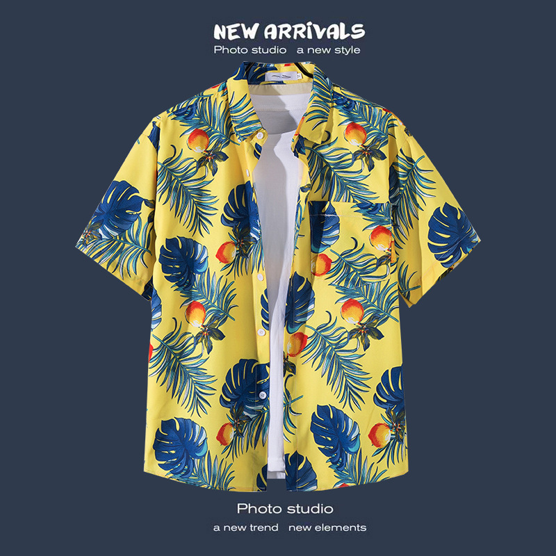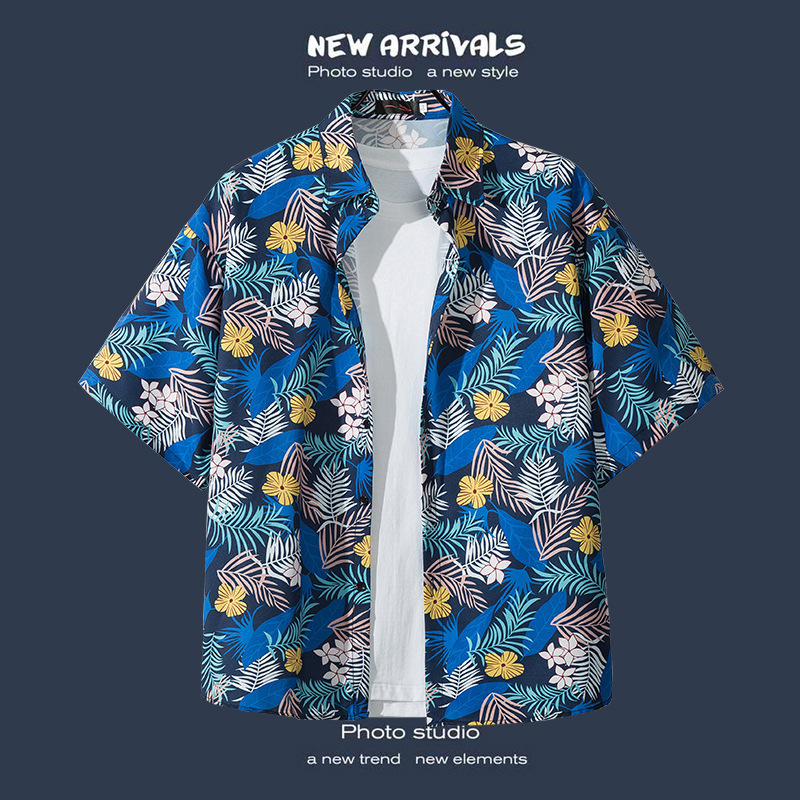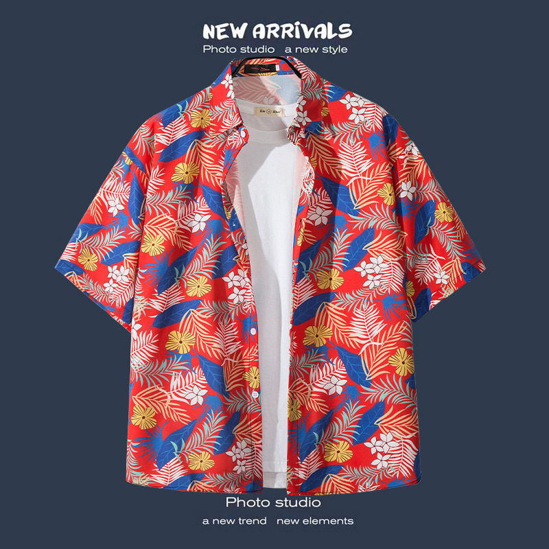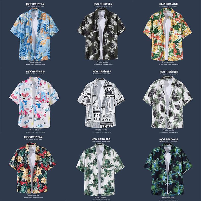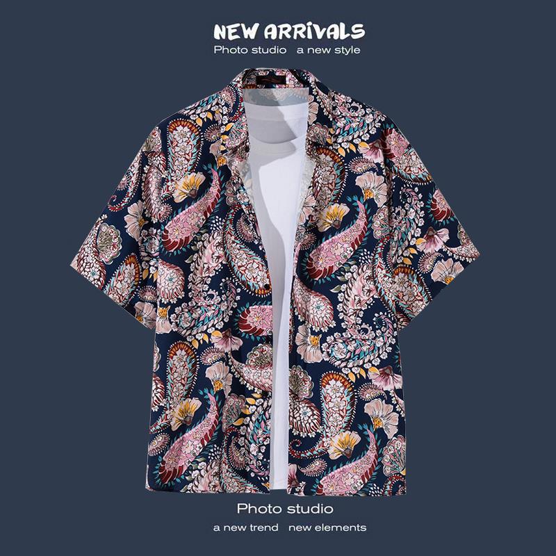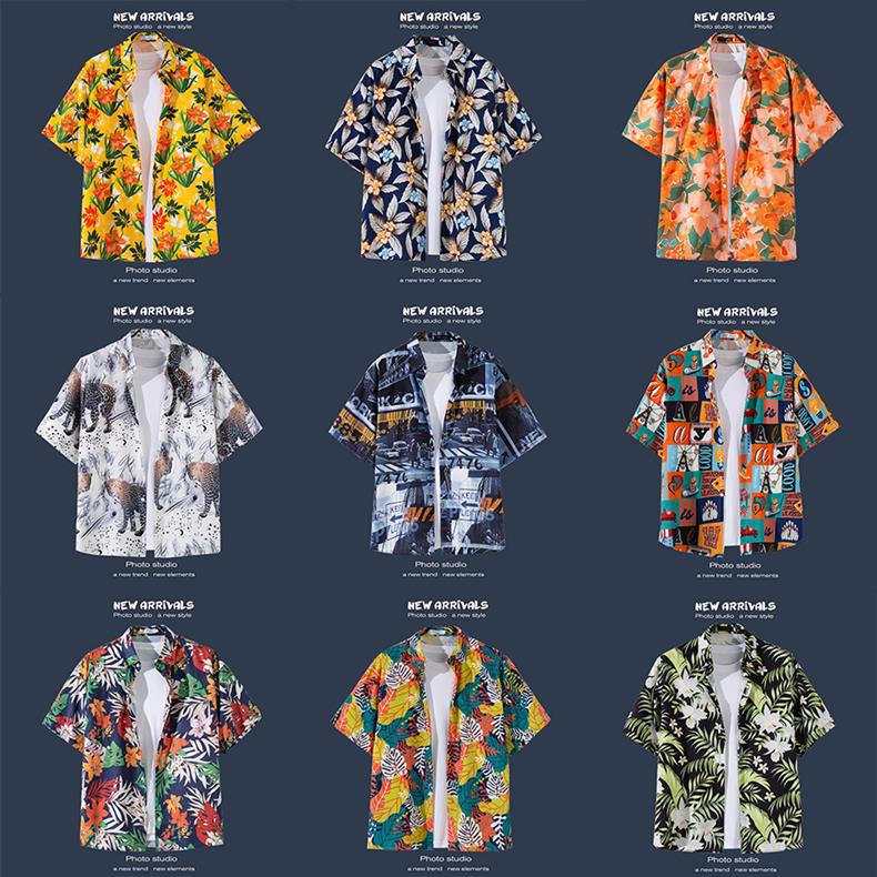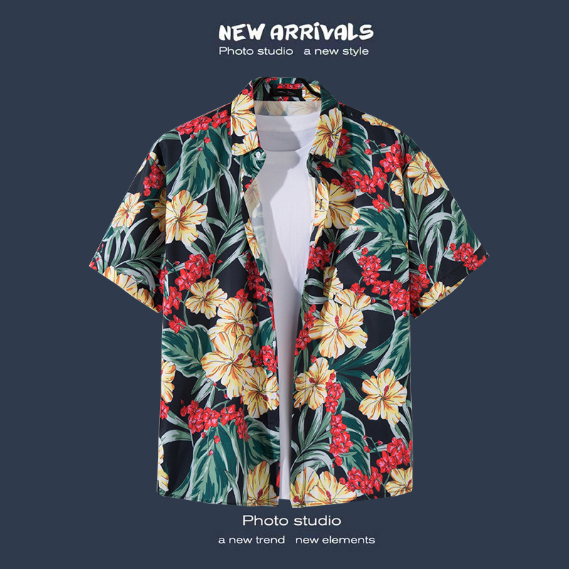 국경 간 폭발 홍콩 바람 ruffian 잘 생긴 반팔 꽃 셔츠 커플 해변 휴가 복고풍 바람 느슨한 셔츠 소스 공장스토어 가기