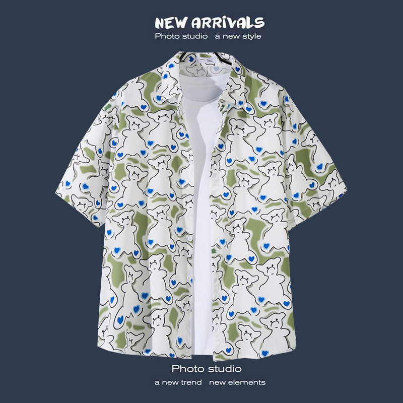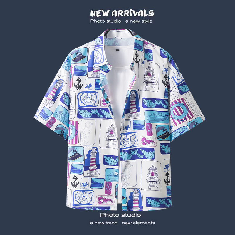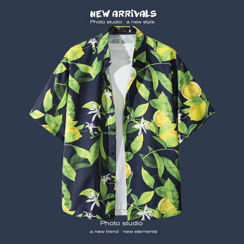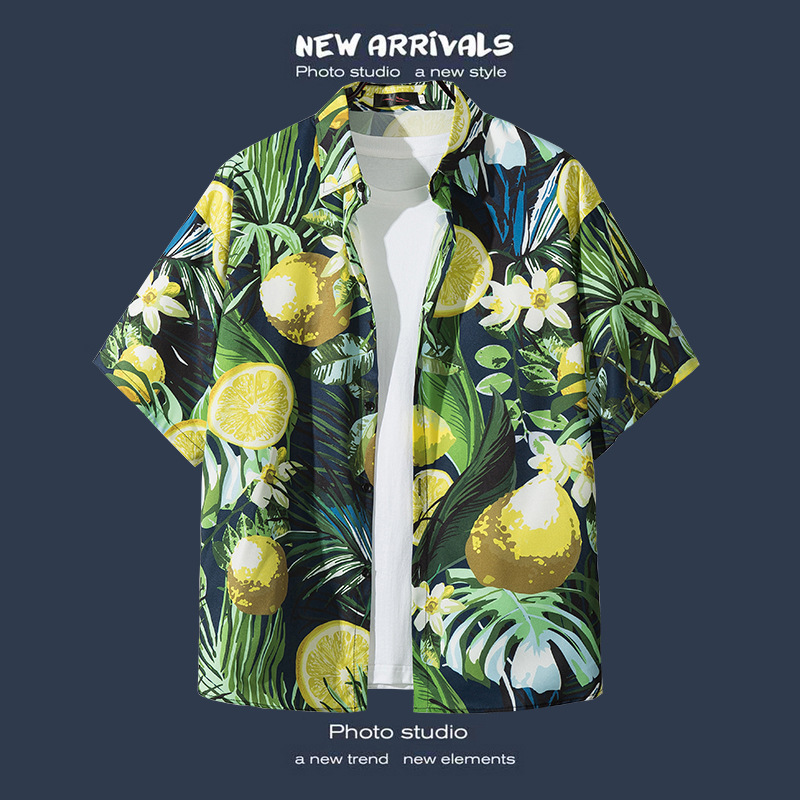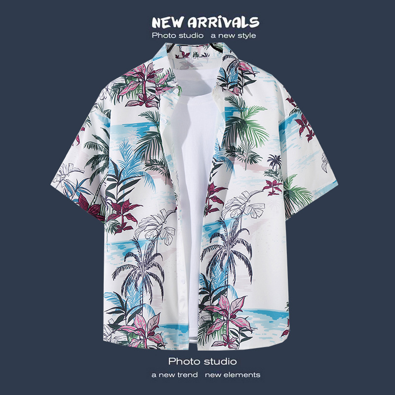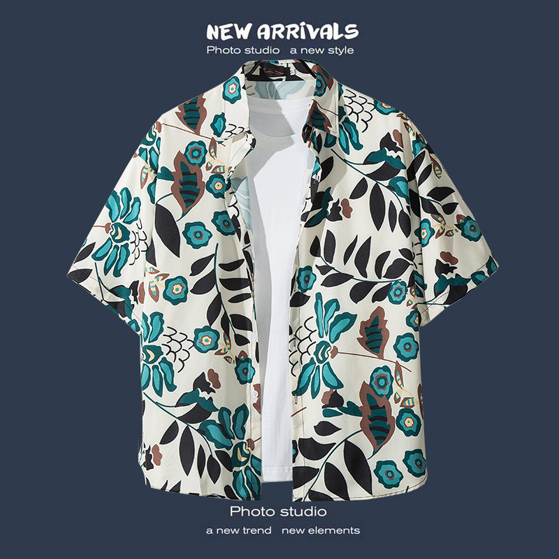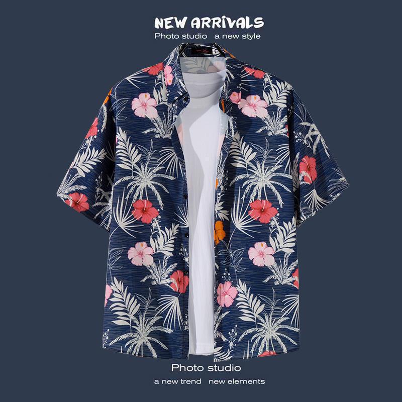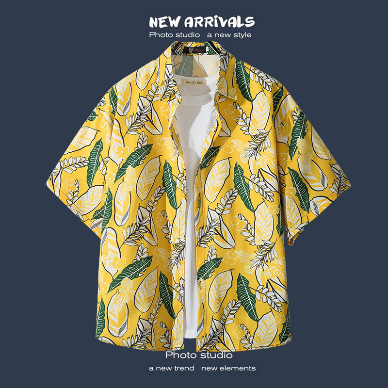 국경 간 폭발 홍콩 바람 ruffian 잘 생긴 반팔 꽃 셔츠 커플 해변 휴가 복고풍 바람 느슨한 셔츠 소스 공장스토어 가기