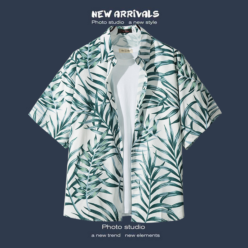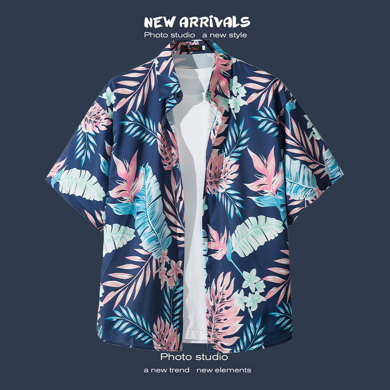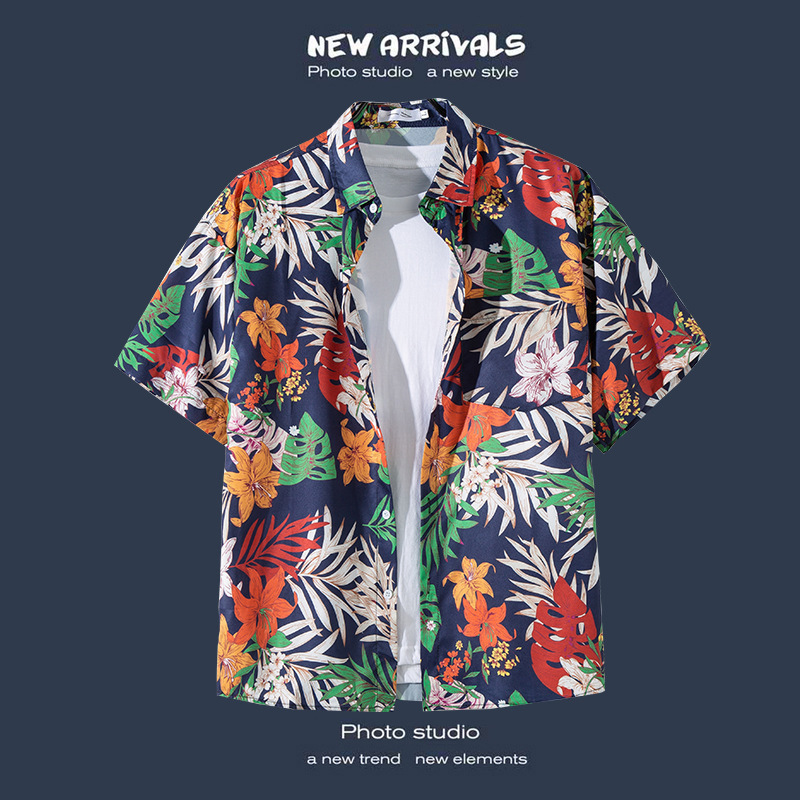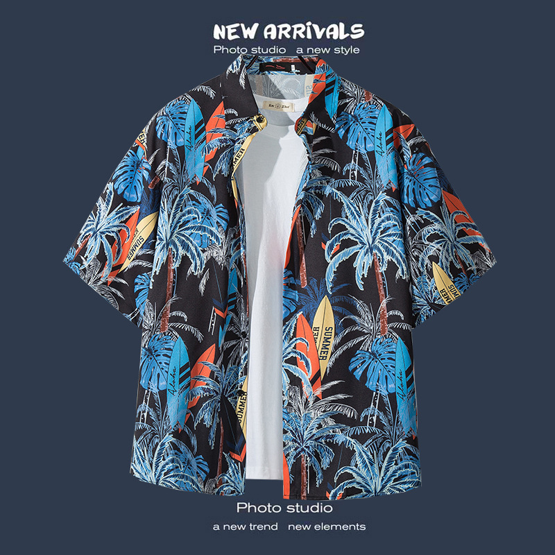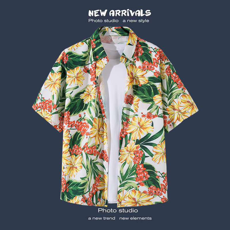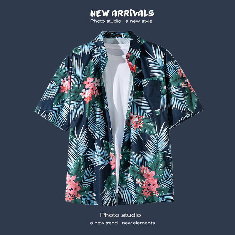 국경 간 폭발 홍콩 바람 ruffian 잘 생긴 반팔 꽃 셔츠 커플 해변 휴가 복고풍 바람 느슨한 셔츠 소스 공장