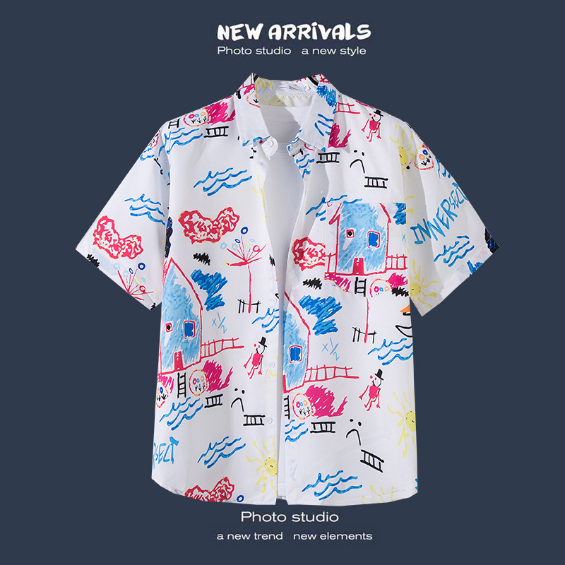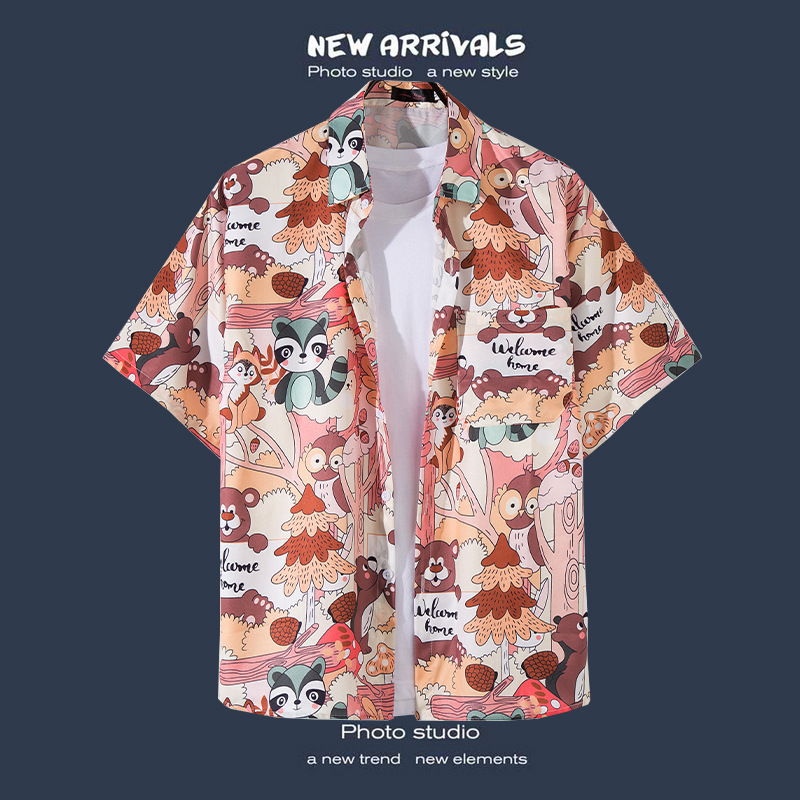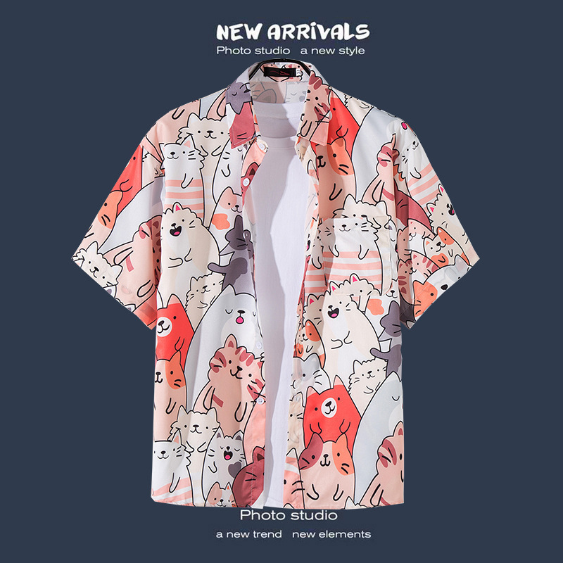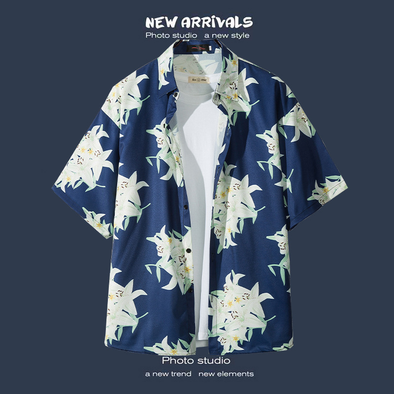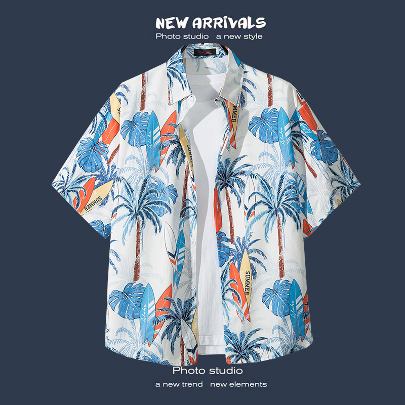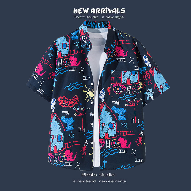 국경 간 폭발 홍콩 바람 ruffian 잘 생긴 반팔 꽃 셔츠 커플 해변 휴가 복고풍 바람 느슨한 셔츠 소스 공장