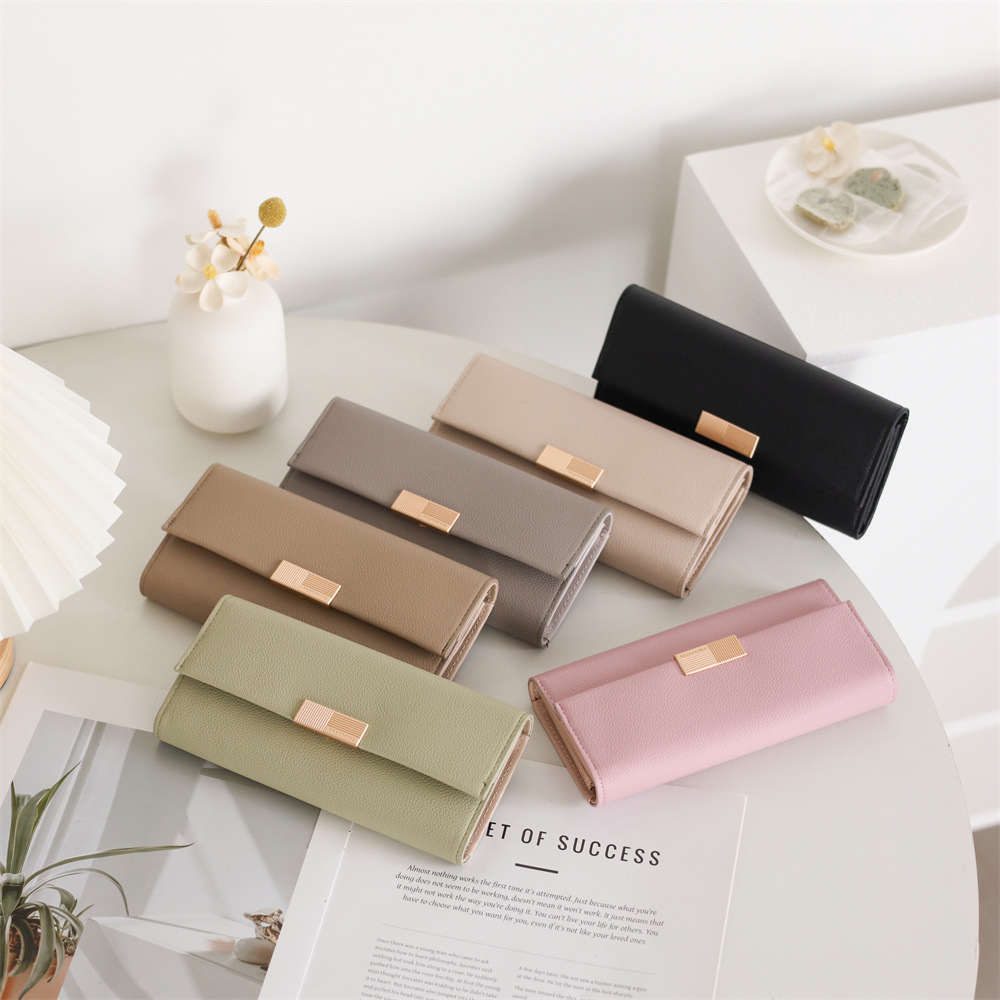 국경 새 지갑 숙녀 긴 다기능 대용량 패션 간단한 단색 클러치 재고 도매스토어 가기