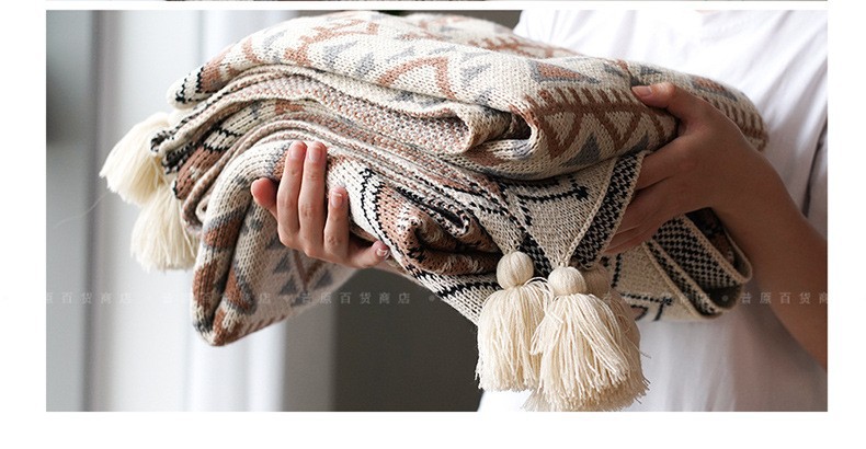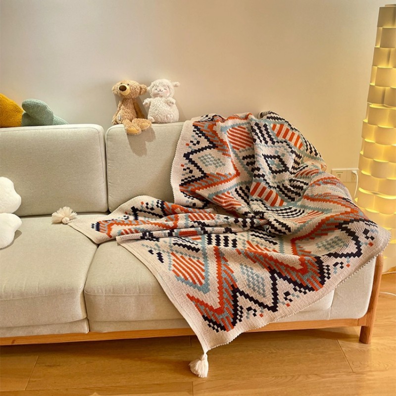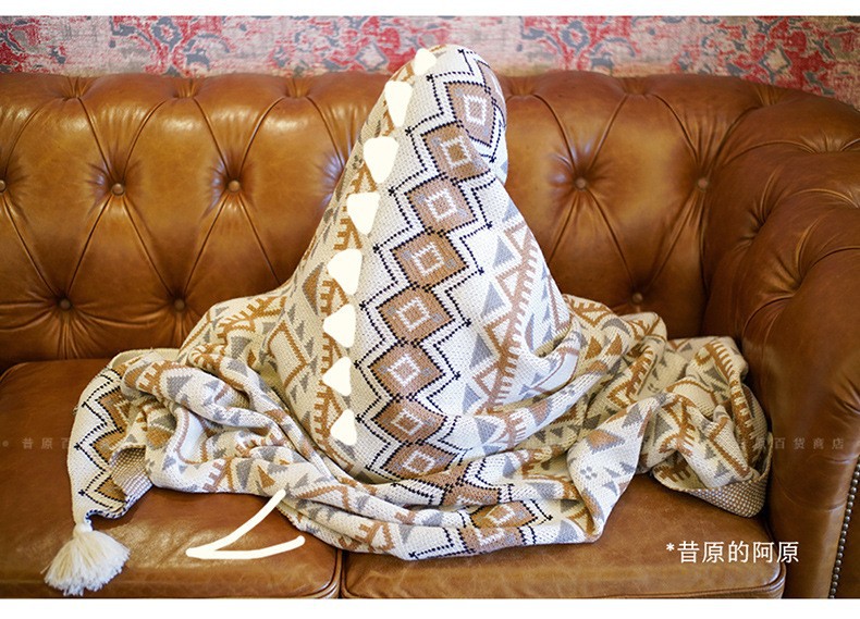 보헤미안 스타일 소파 담요 민족 스타일 담요 노르딕 스타일 숄 에어컨 담요 홈스테이 니트 술 침대 끝 담요