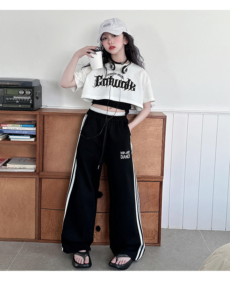소녀의 여름 옷 스포츠 세트 새로운 봄과 여름 유행 운동복 패션 스트리트 댄스 패션 3 피스 세트스토어 가기