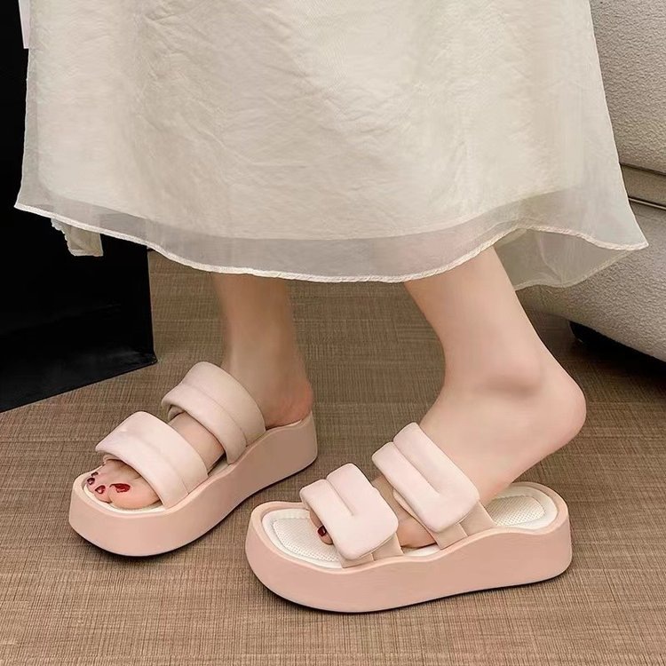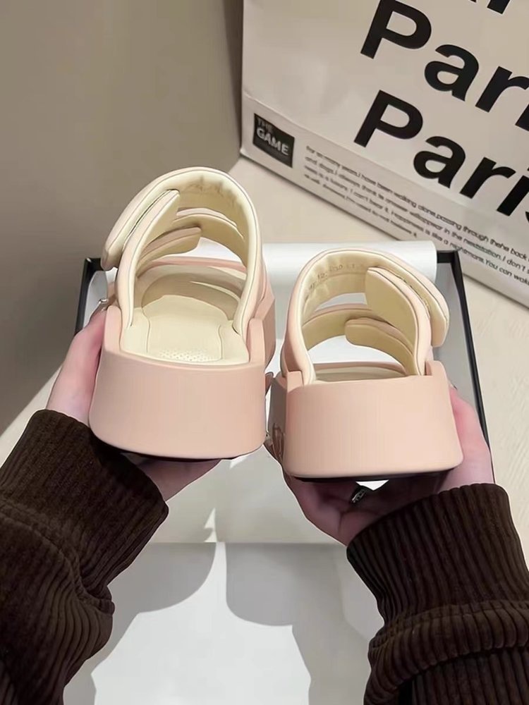 여성용 크림 스타일 벨크로 플랫폼 케이크 바닥 샌들 2025 새로운 두꺼운 바닥 미끄럼 방지 해변 한 단어 슬리퍼