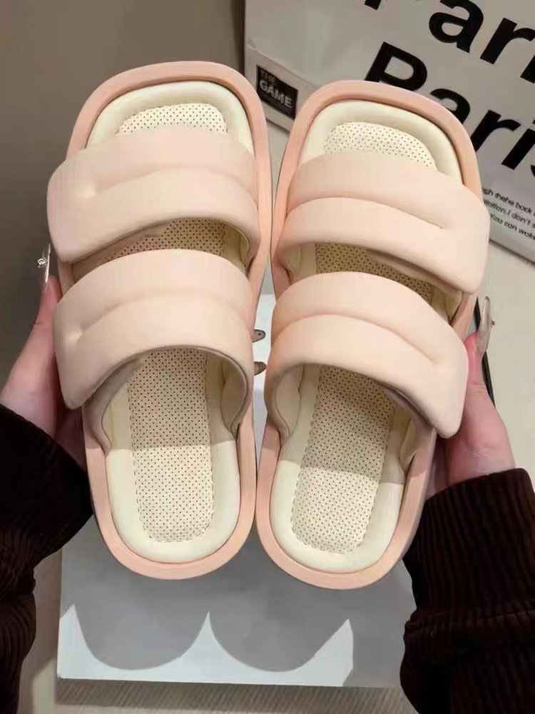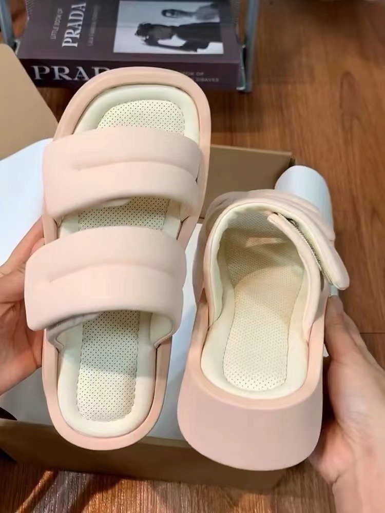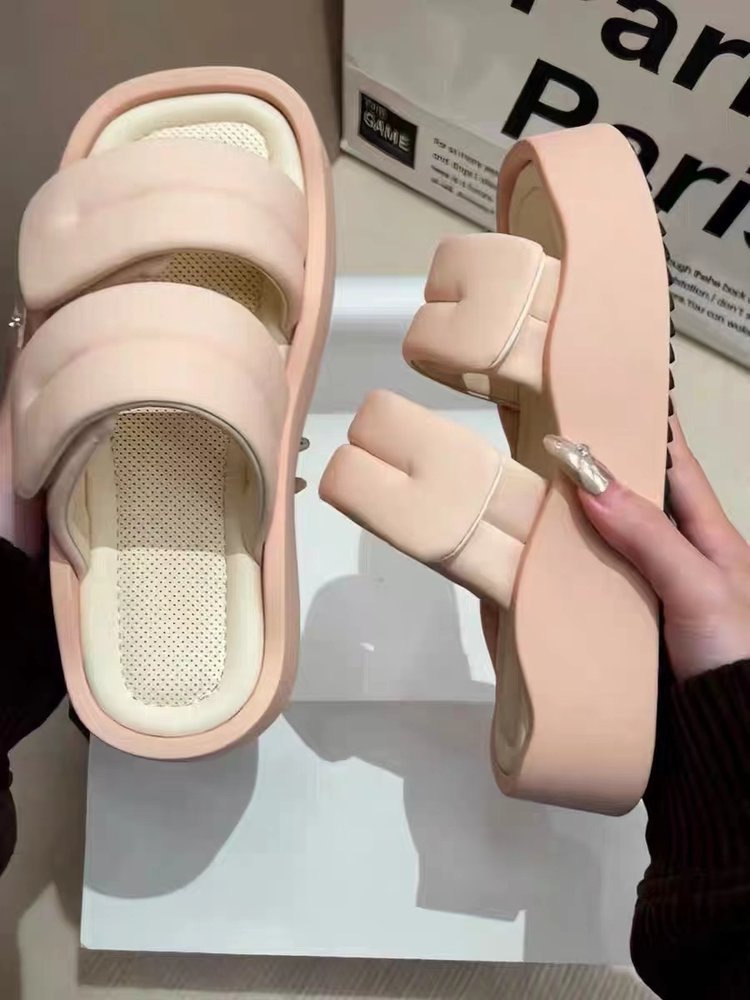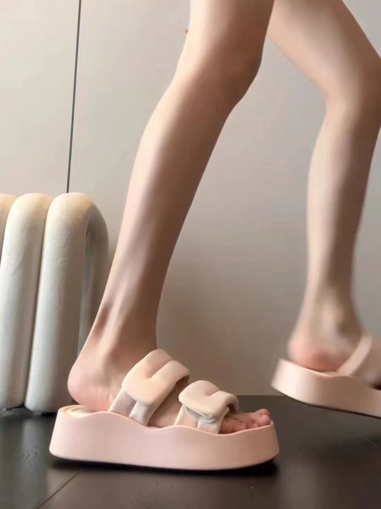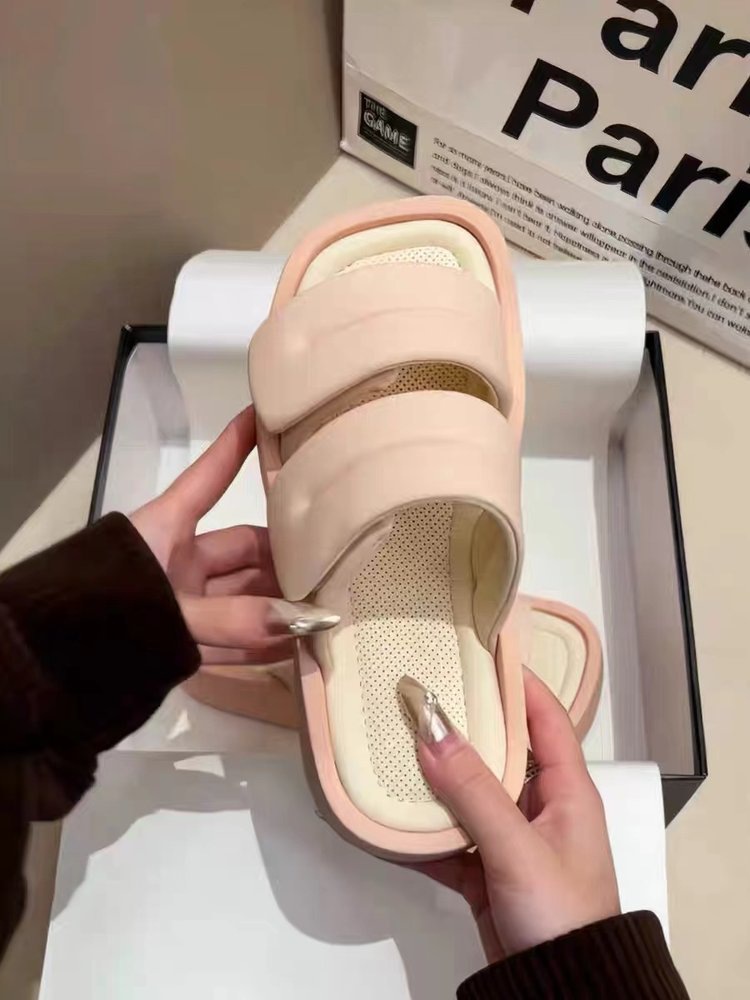 여성용 크림 스타일 벨크로 플랫폼 케이크 바닥 샌들 2025 새로운 두꺼운 바닥 미끄럼 방지 해변 한 단어 슬리퍼스토어 가기