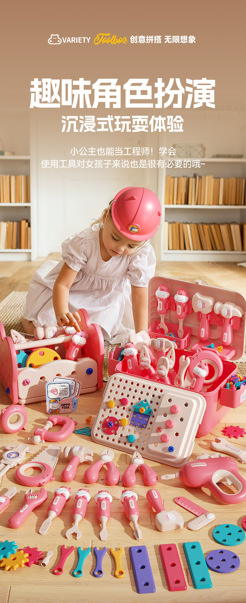 • 전기 드릴 고급 핑크-Hippo Xiaobei 도구 상자 + 보관 상자