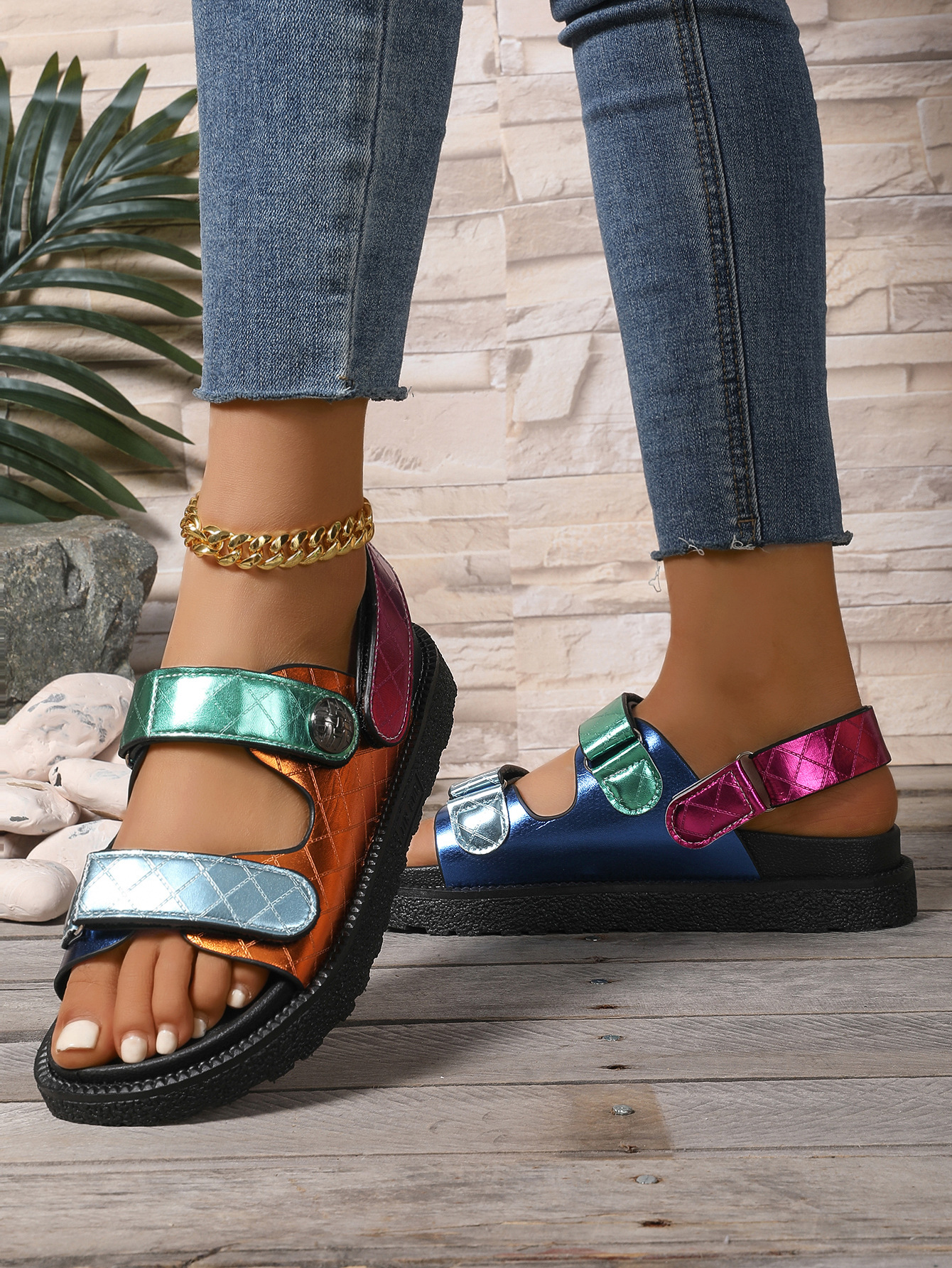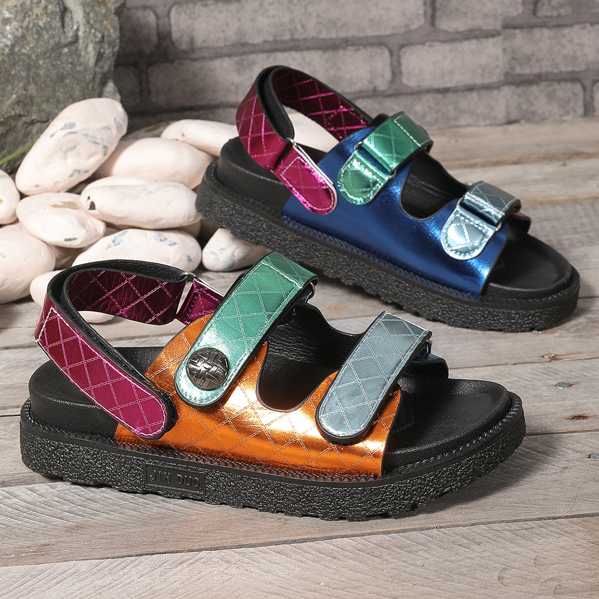 2025 대외 무역 새로운 두꺼운 색 독수리 발가락 비치 샌들 플러스 사이즈 여성 신발 다채로운 프리즘 비치 슈즈 작은 향기로운 스타일스토어 가기