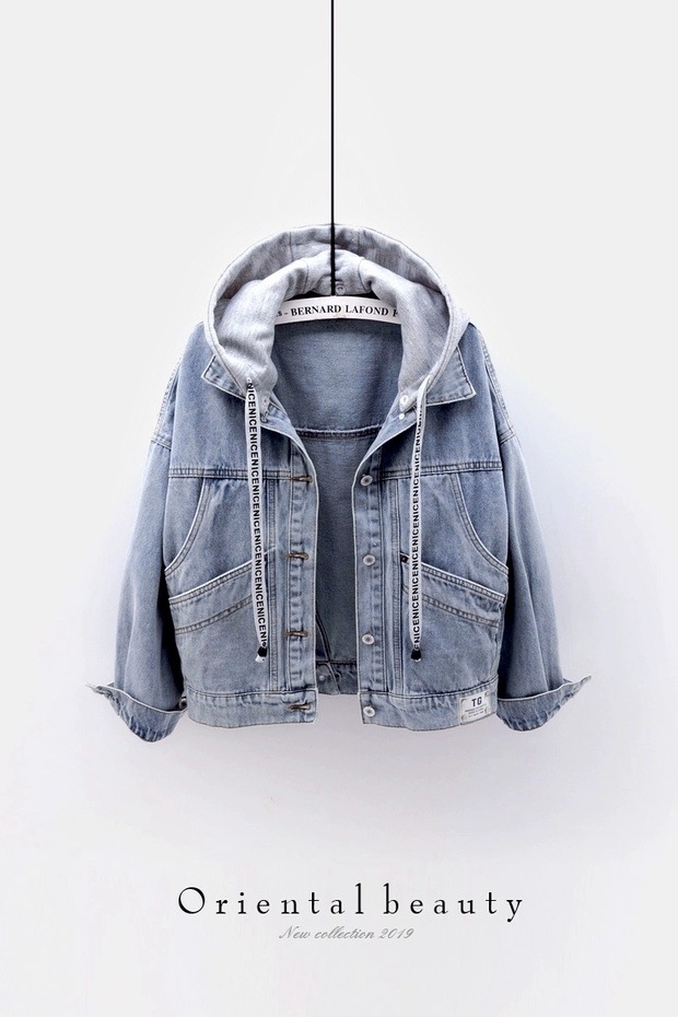 2020 봄과 가을 새로운 올매치 후드 데님 재킷 여자 쇼트 루즈 한국 BF 쇼트 재킷 트렌디스토어 가기