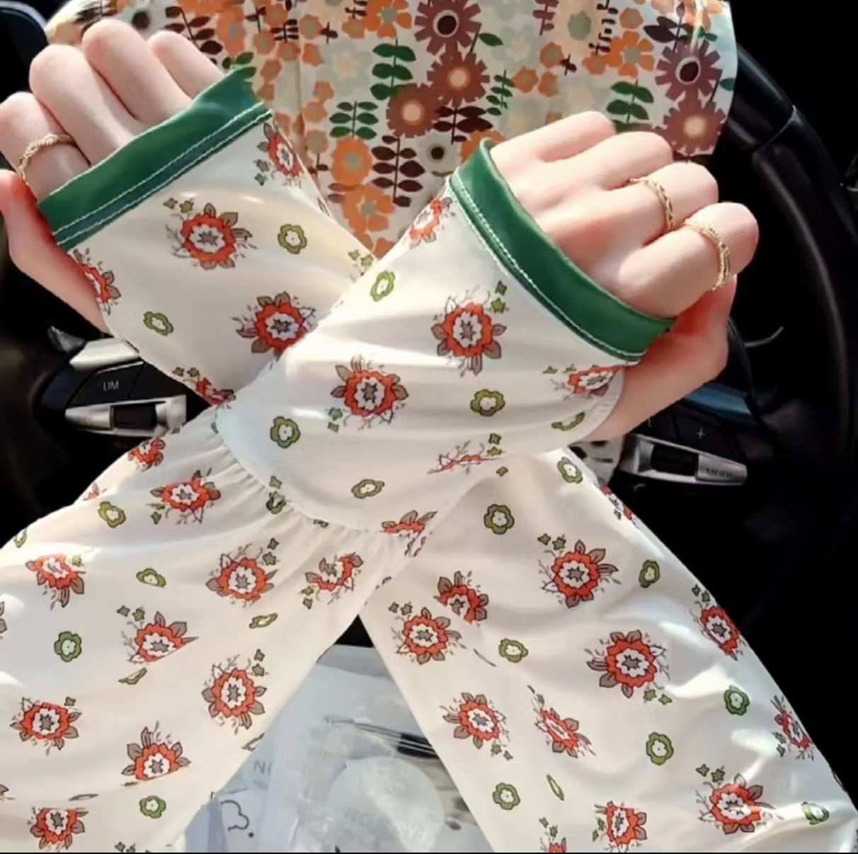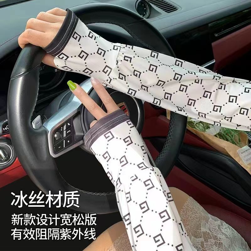 패션 꽃 여성의 새로운 복숭아 선 스크린 아이스 실크 소매 느슨한 한국식 올매치 운전 야외 승마 팔 가드