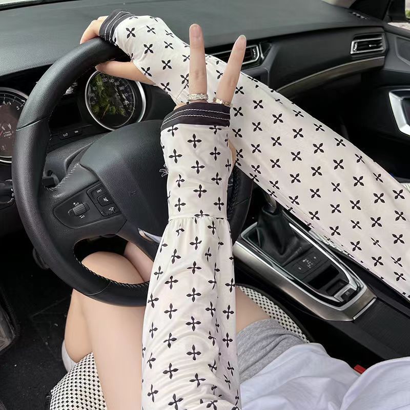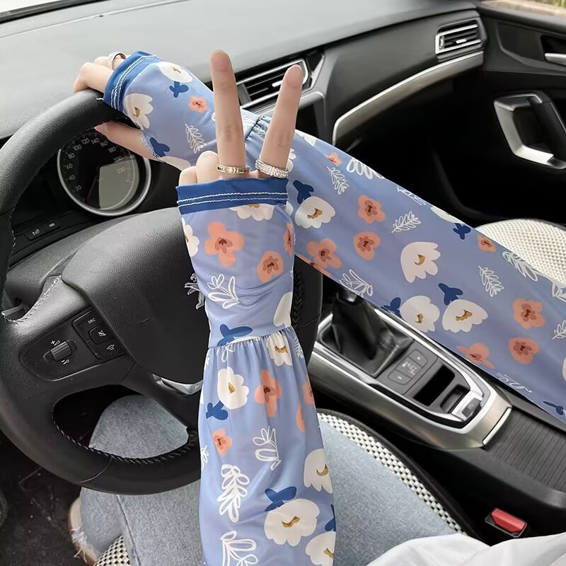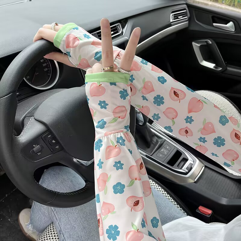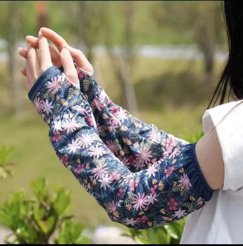 패션 꽃 여성의 새로운 복숭아 선 스크린 아이스 실크 소매 느슨한 한국식 올매치 운전 야외 승마 팔 가드스토어 가기