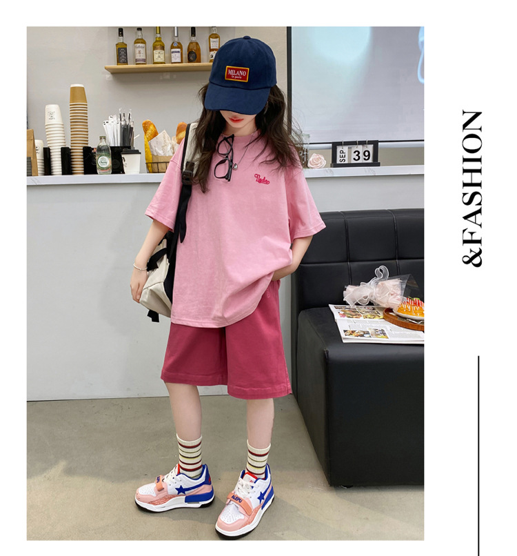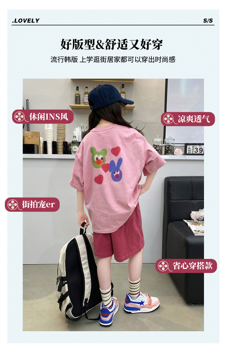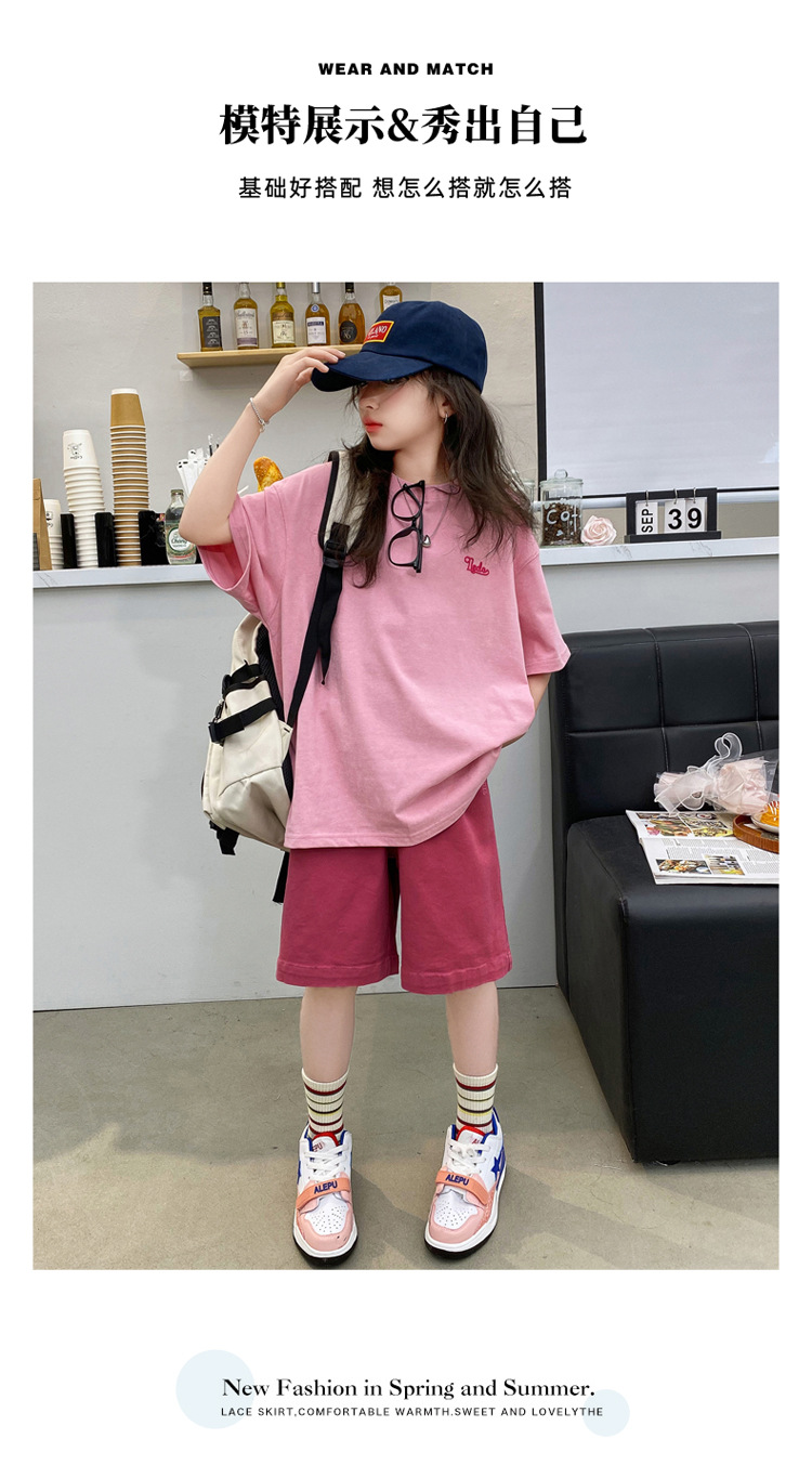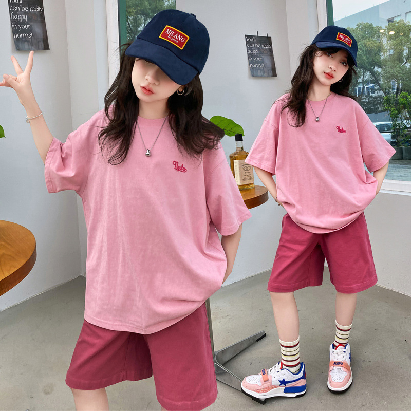 소녀 여름 반팔 세트 2025 새로운 서양식 소녀 여름 캐주얼 티셔츠 어린이 반바지 운동복스토어 가기