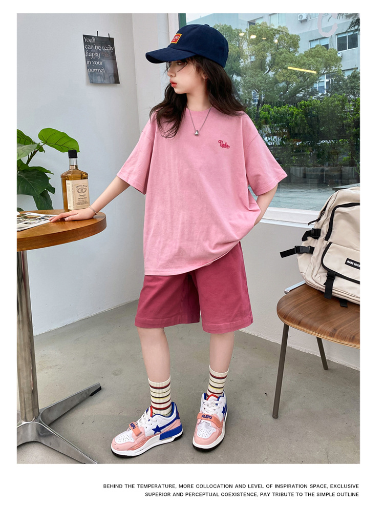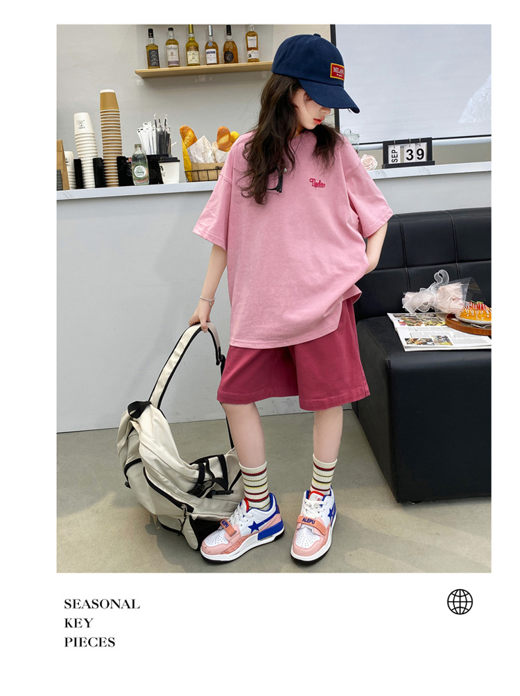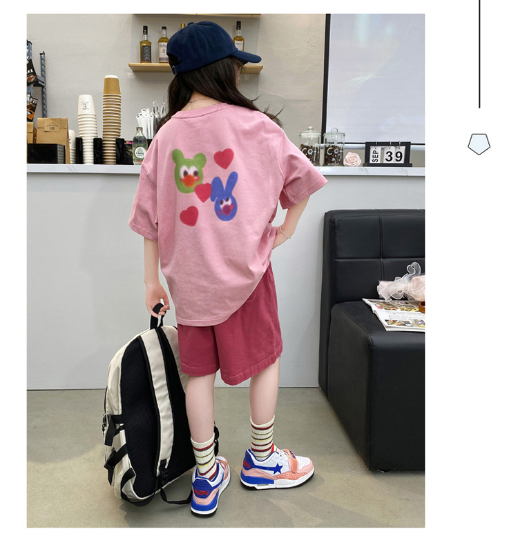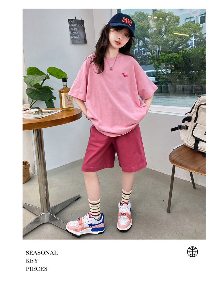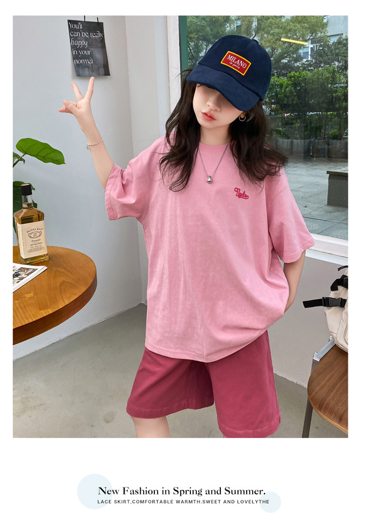 소녀 여름 반팔 세트 2025 새로운 서양식 소녀 여름 캐주얼 티셔츠 어린이 반바지 운동복스토어 가기