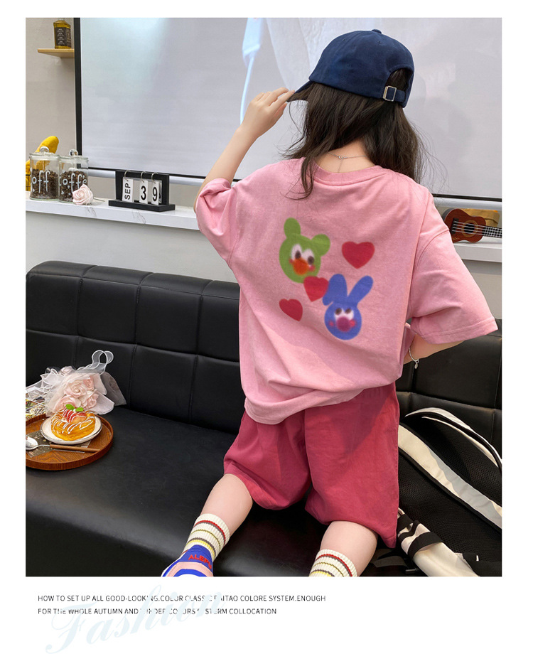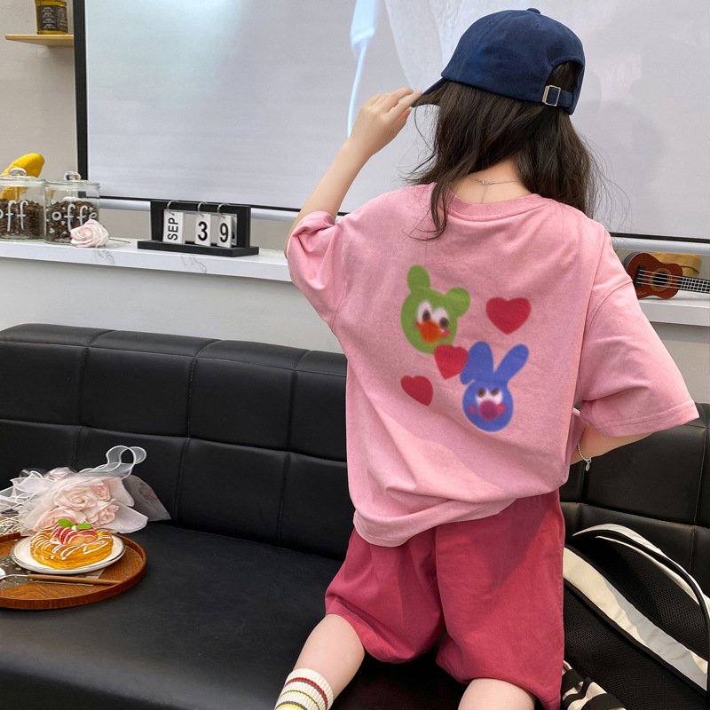소녀 여름 반팔 세트 2025 새로운 서양식 소녀 여름 캐주얼 티셔츠 어린이 반바지 운동복