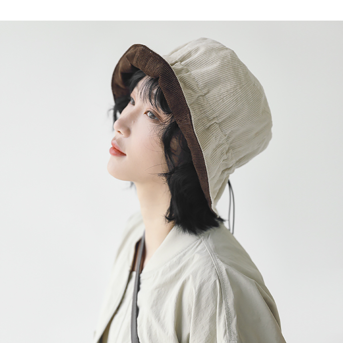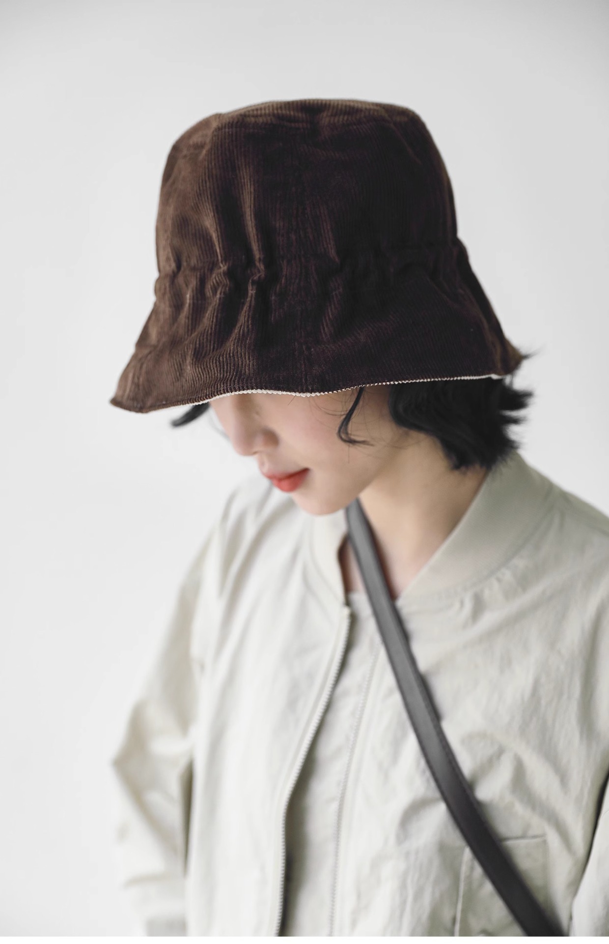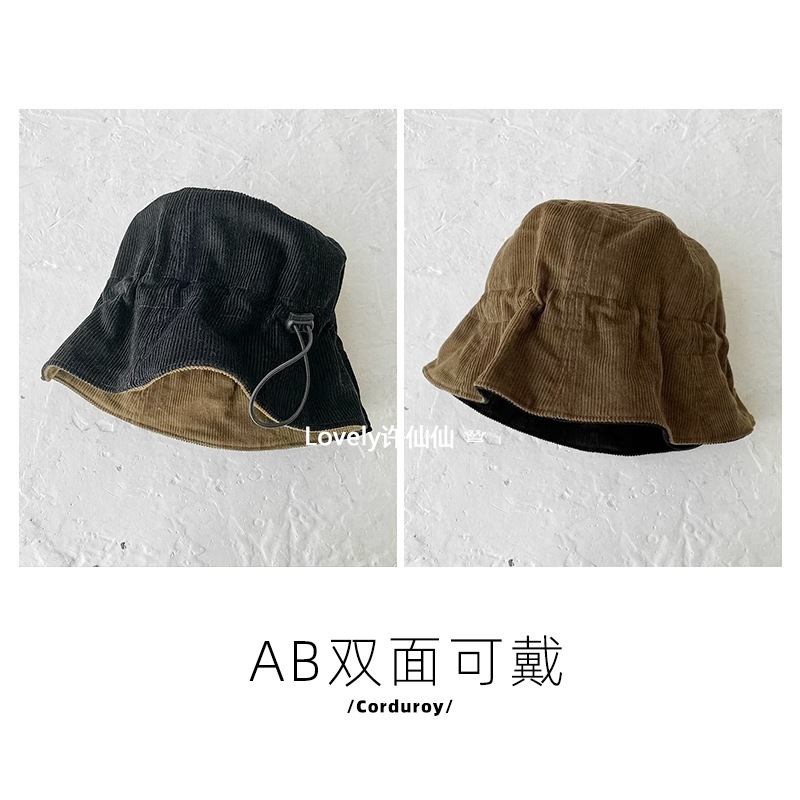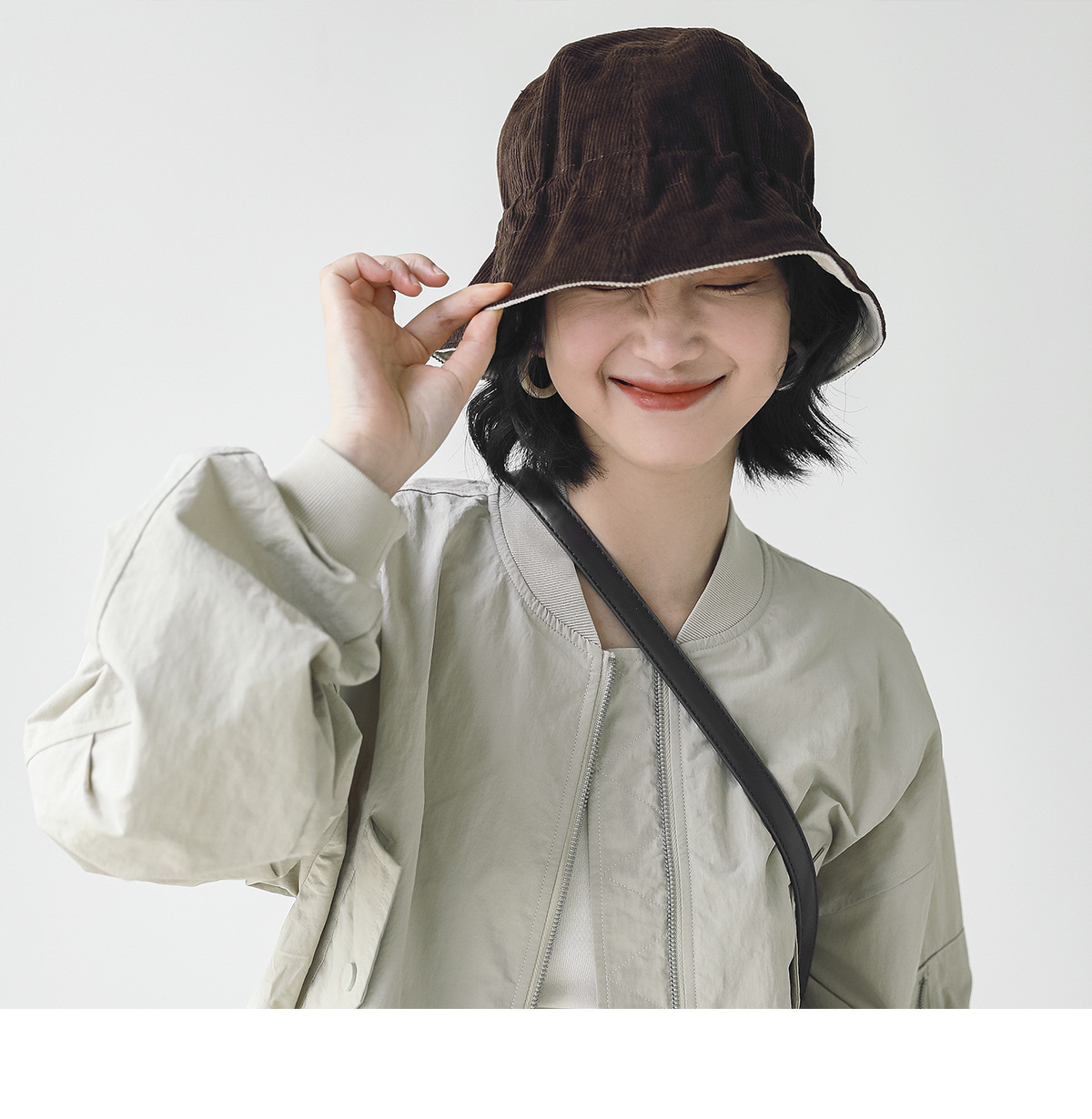 일본 주문 양면 단색 여성의 가을 및 겨울 얼굴 쇼 작은 예술적 올매치 분지 모자 큰 머리 코듀로이 어부 모자스토어 가기