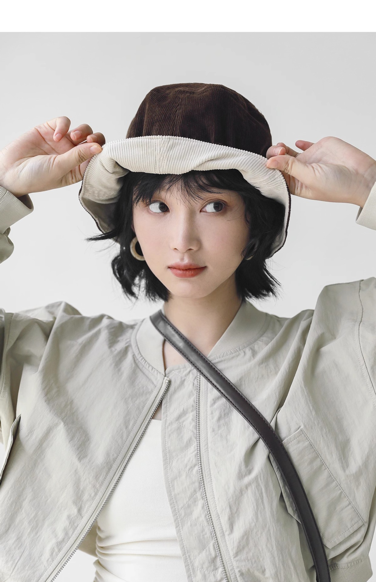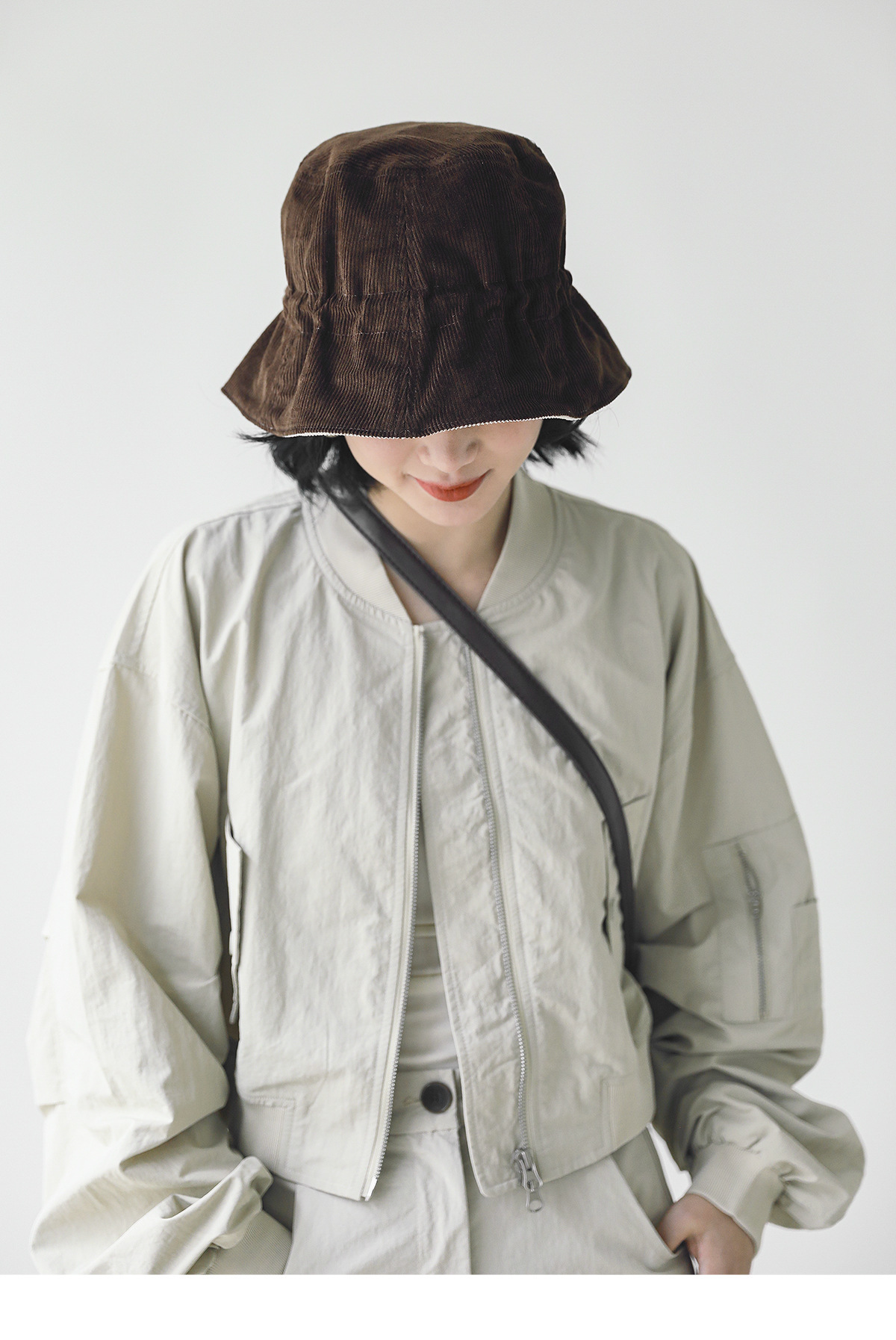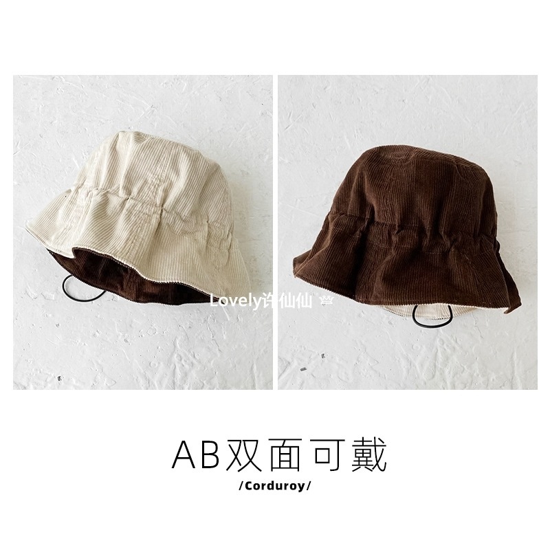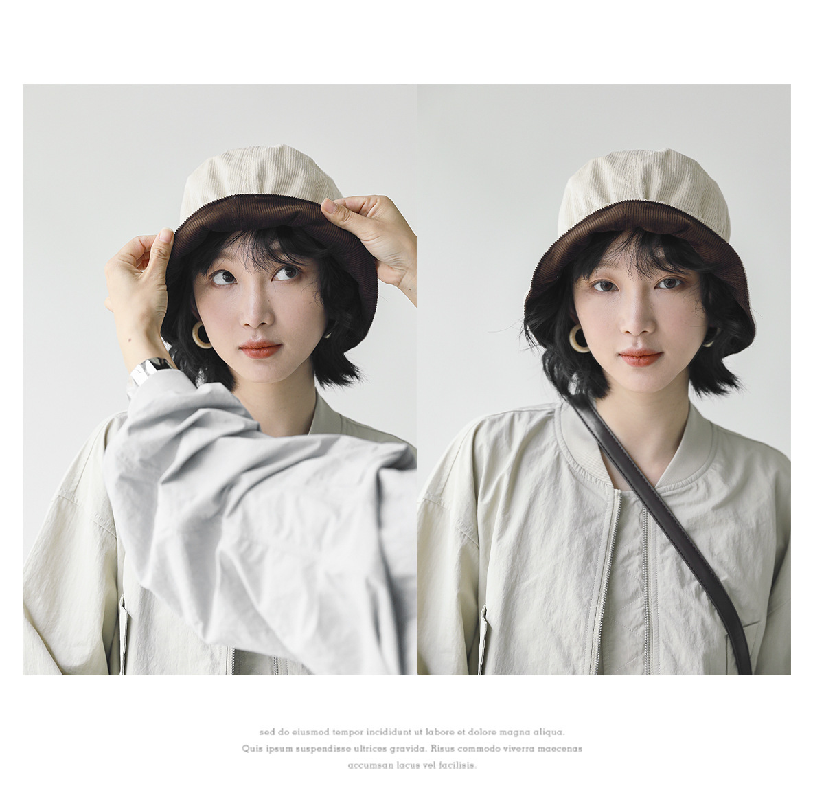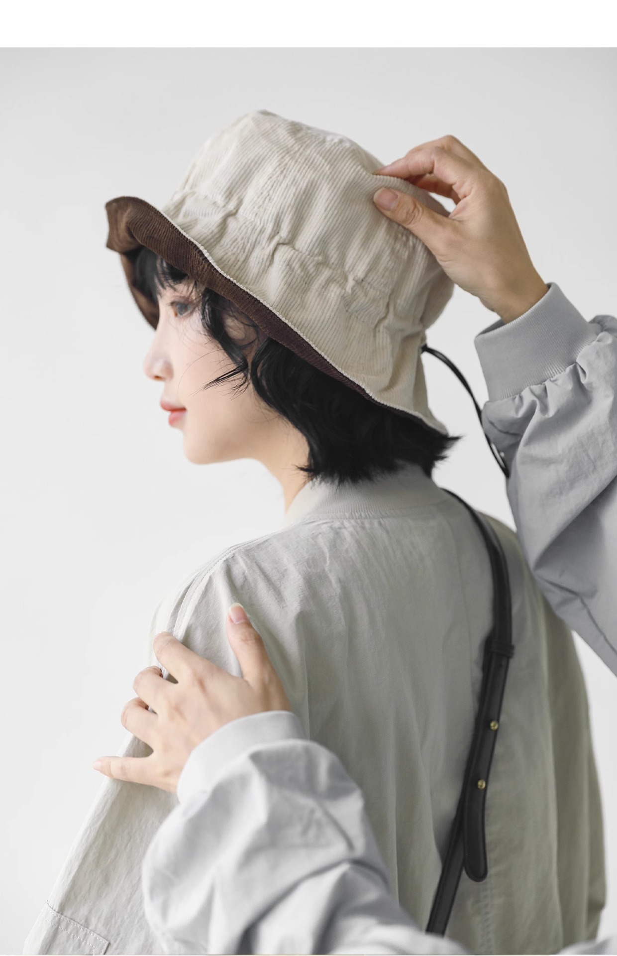 일본 주문 양면 단색 여성의 가을 및 겨울 얼굴 쇼 작은 예술적 올매치 분지 모자 큰 머리 코듀로이 어부 모자스토어 가기