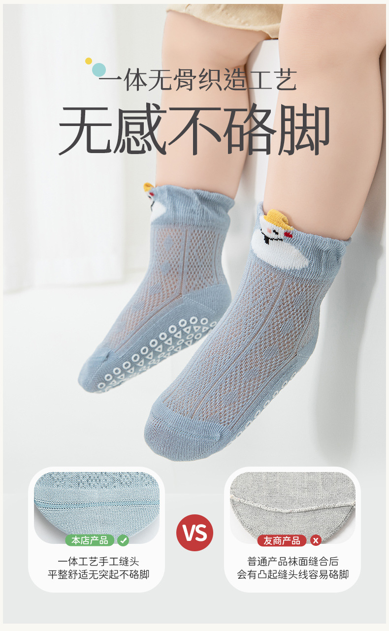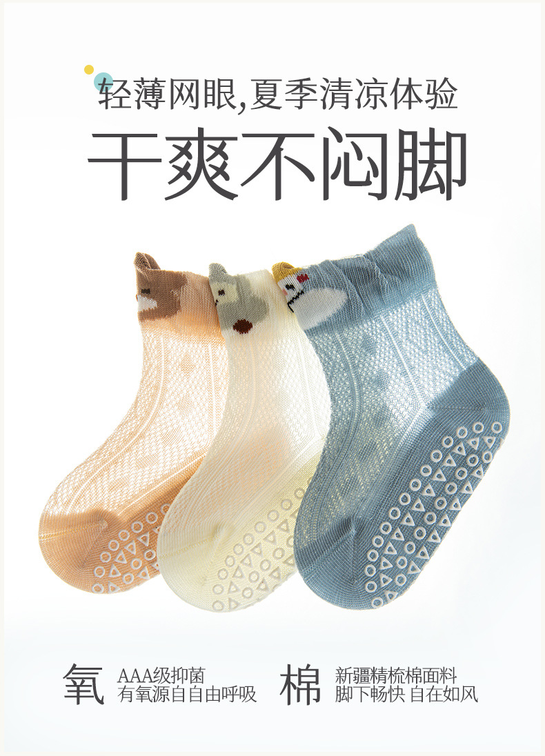 아기 바닥 양말 클래스 면화 여름 얇은 메쉬 뼈없는 양말 0-1-3 세 느슨해진 아기 미끄럼 방지 유아 양말스토어 가기