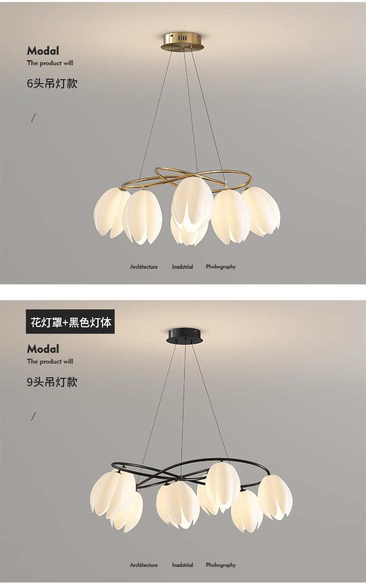 2025 간단한 현대 가정용 잉크 크림 스타일 목련 따뜻한 연구 침실 거실 샹들리에스토어 가기