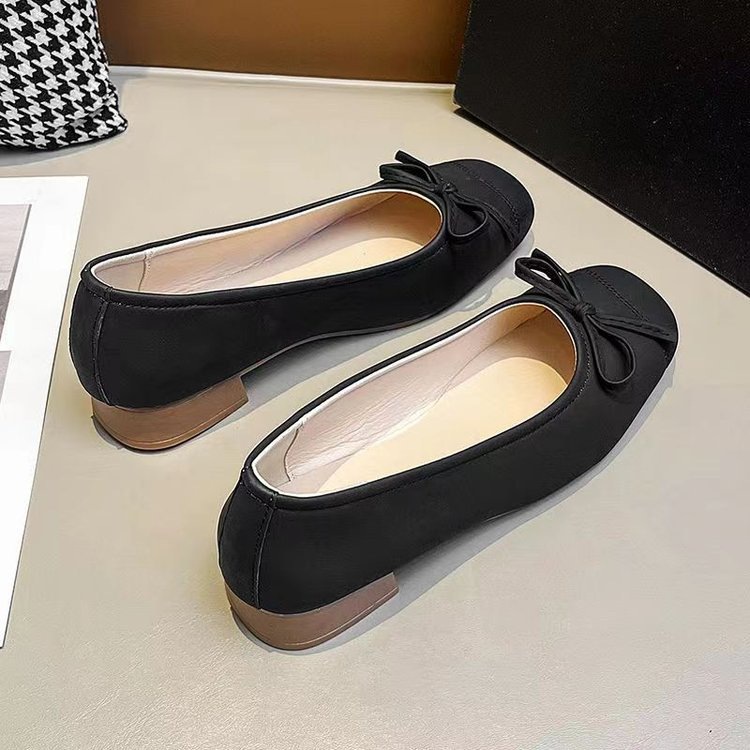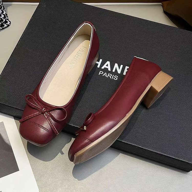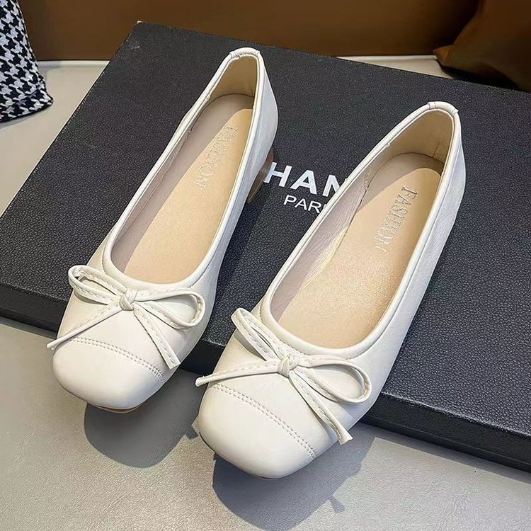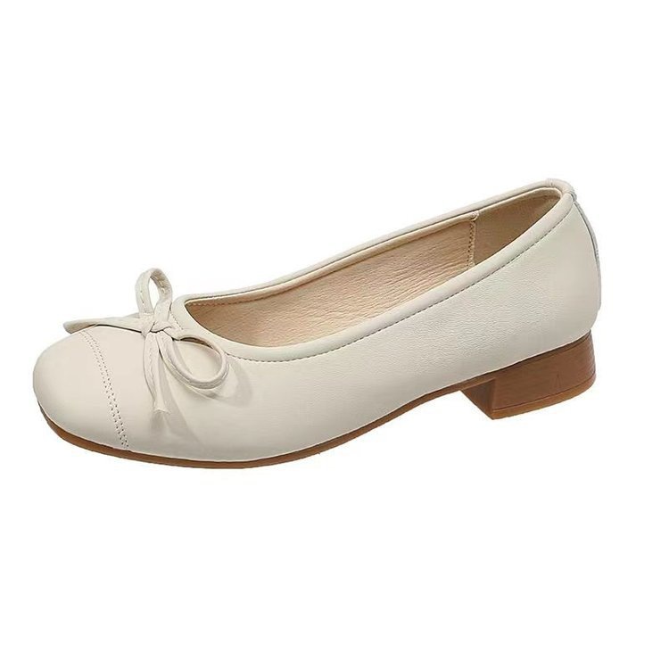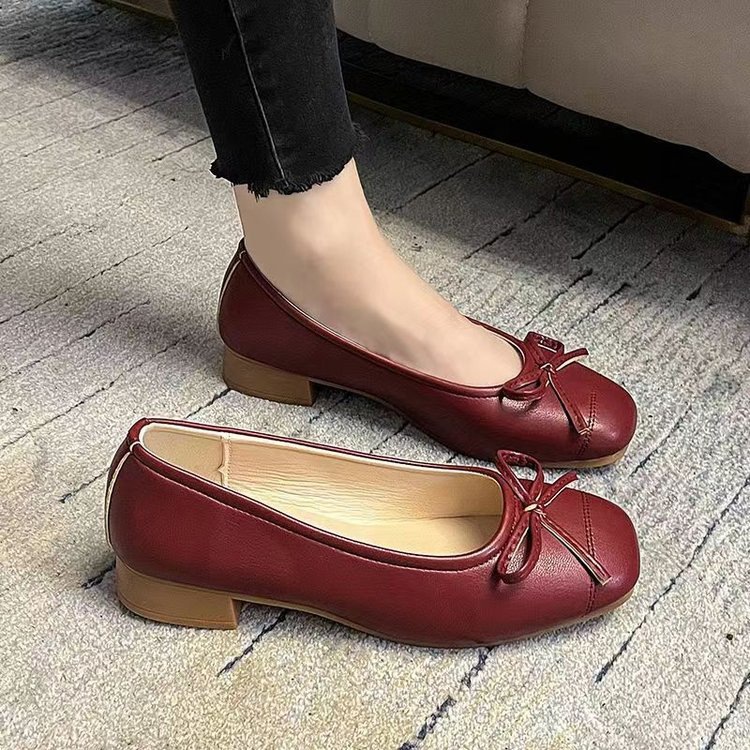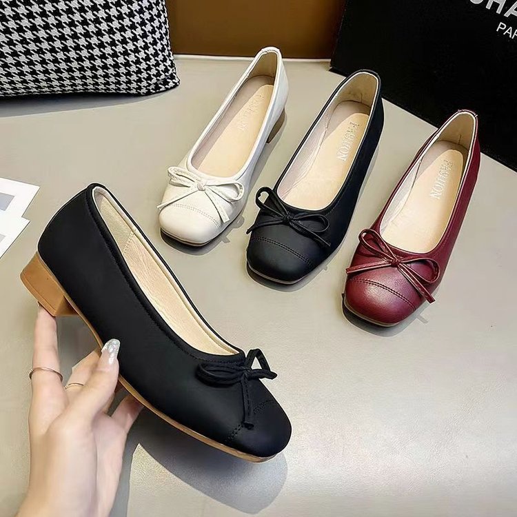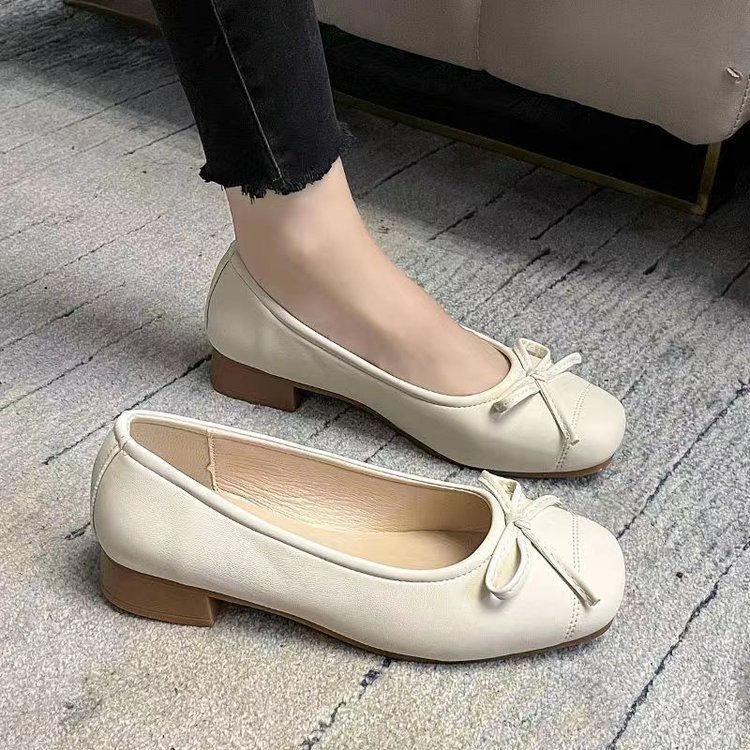 프랑스 스타일 광장 발가락 두꺼운 힐 신발 여성의 2025 봄 새로운 낮은 입 낮은 발 뒤꿈치 부드러운 가죽 우유 신발 부드러운 단독 여성용 작은 가죽 신발