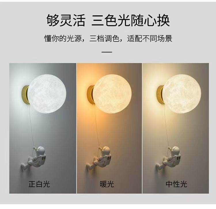 달 벽 램프 북유럽 창조적 인 우주 비행사 어린이 방 램프 침실 침대 옆 램프 만화 소년 소녀 배경 벽 램프스토어 가기