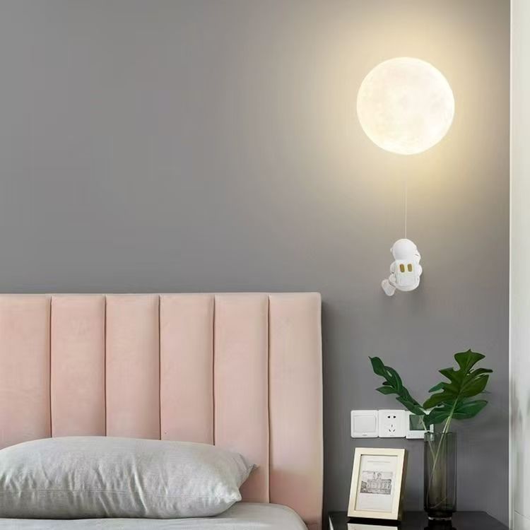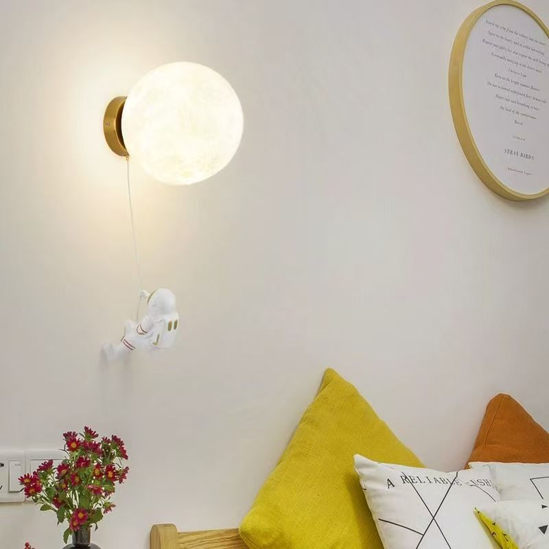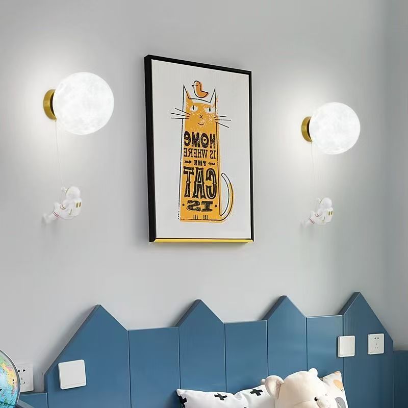 달 벽 램프 북유럽 창조적 인 우주 비행사 어린이 방 램프 침실 침대 옆 램프 만화 소년 소녀 배경 벽 램프