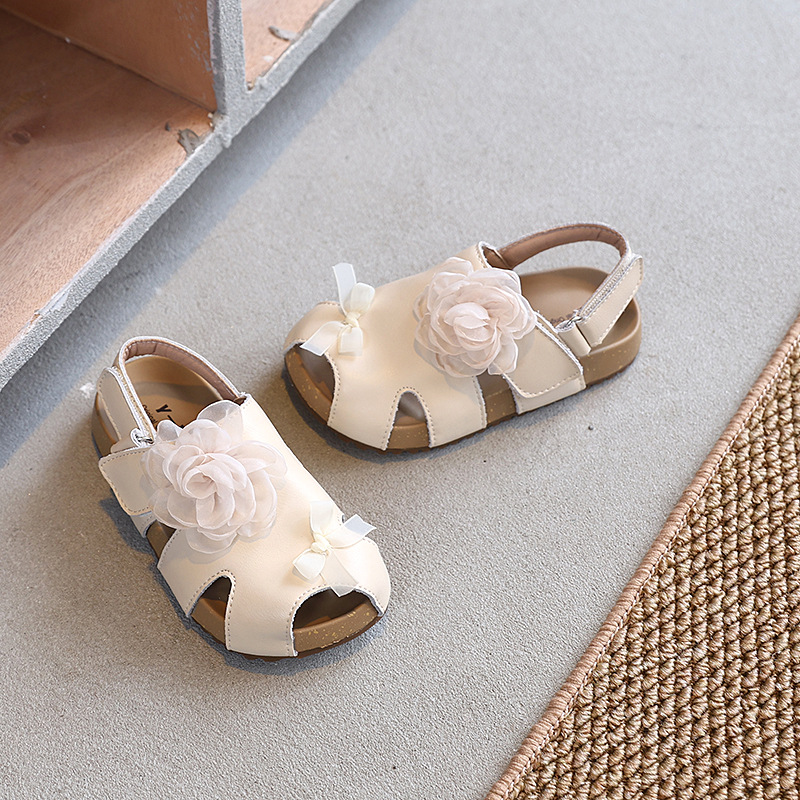 2025 여름 소녀의 샤넬 꽃 버켄 스톡 샌들 중소 아기 소녀의 활 발가락 공주 샌들