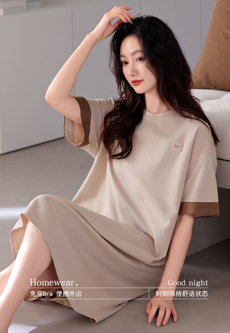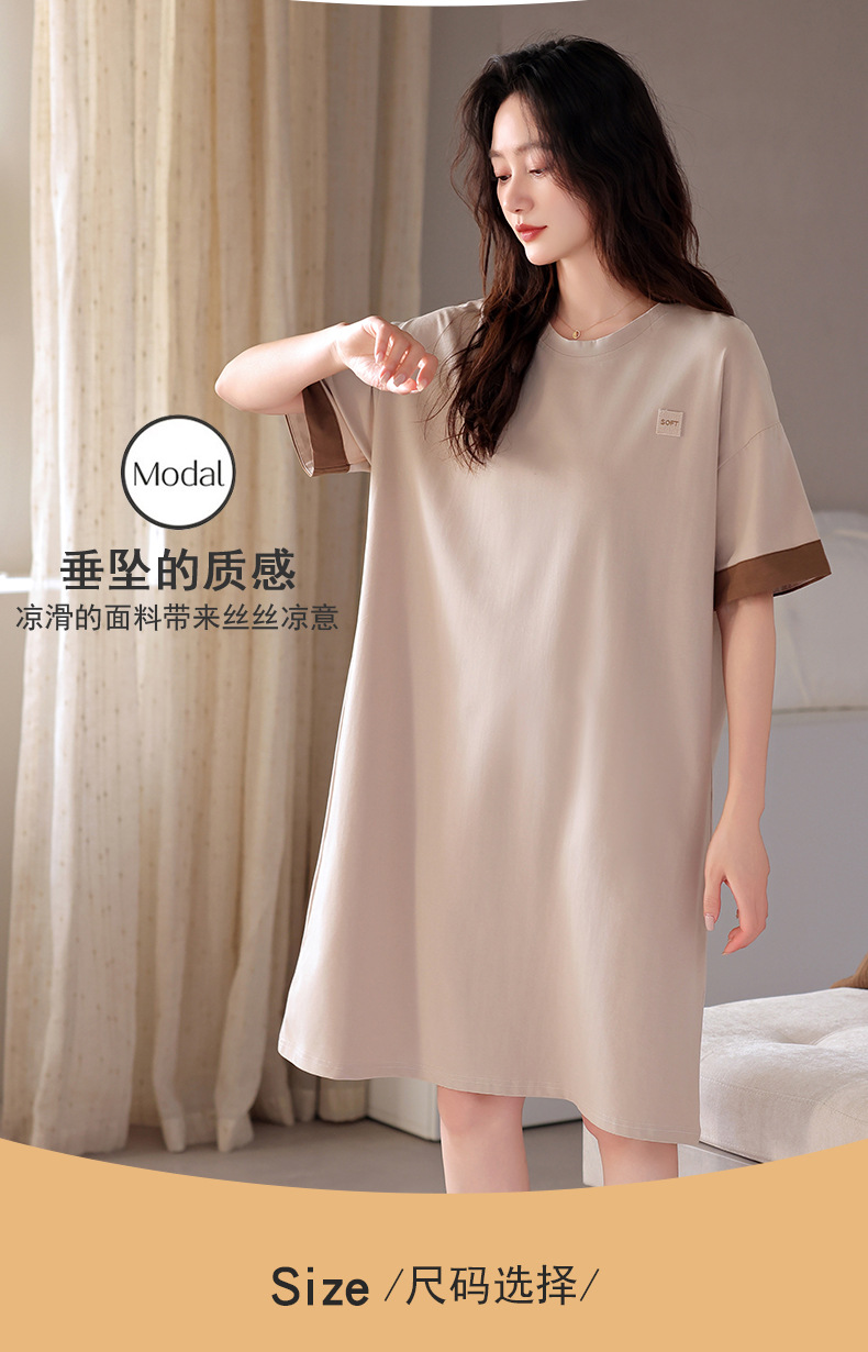 2025 년 여름 가슴 패드가 달린 여성 잠옷 새로운 모달 아이스 실크 플러스 사이즈 의류 반소매 잠옷스토어 가기