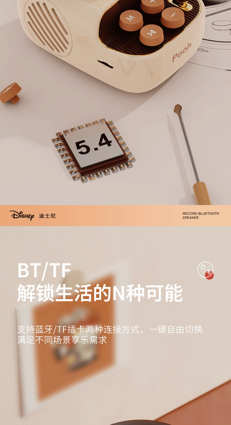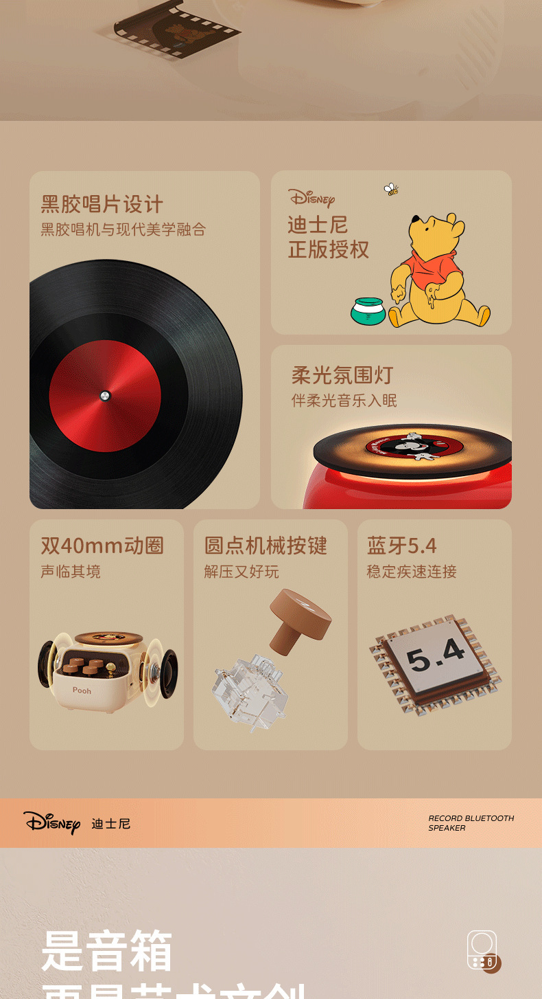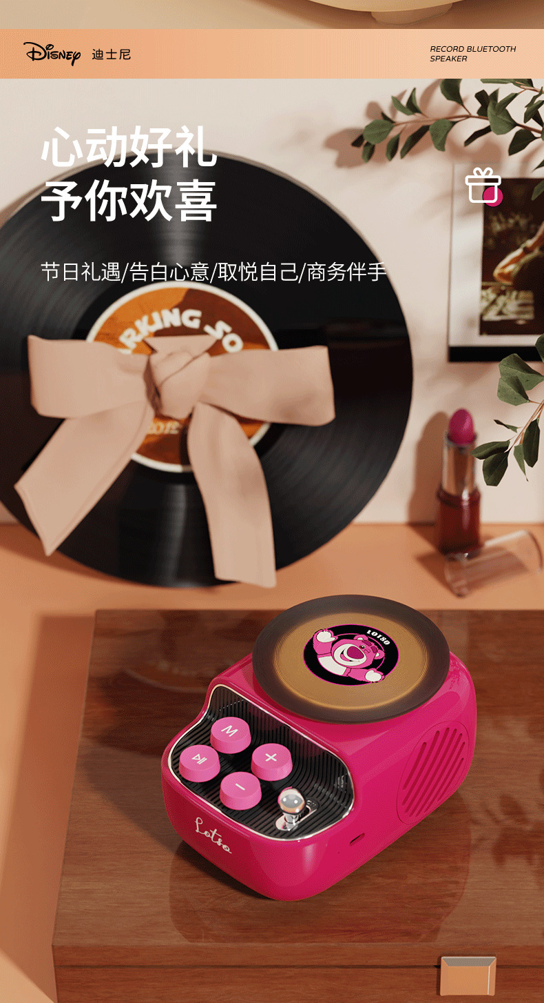 디즈니/디즈니 블랙 플라스틱 레코드 레트로 오디오 무선 블루투스 스피커 서브우퍼 생일 선물 남녀공용