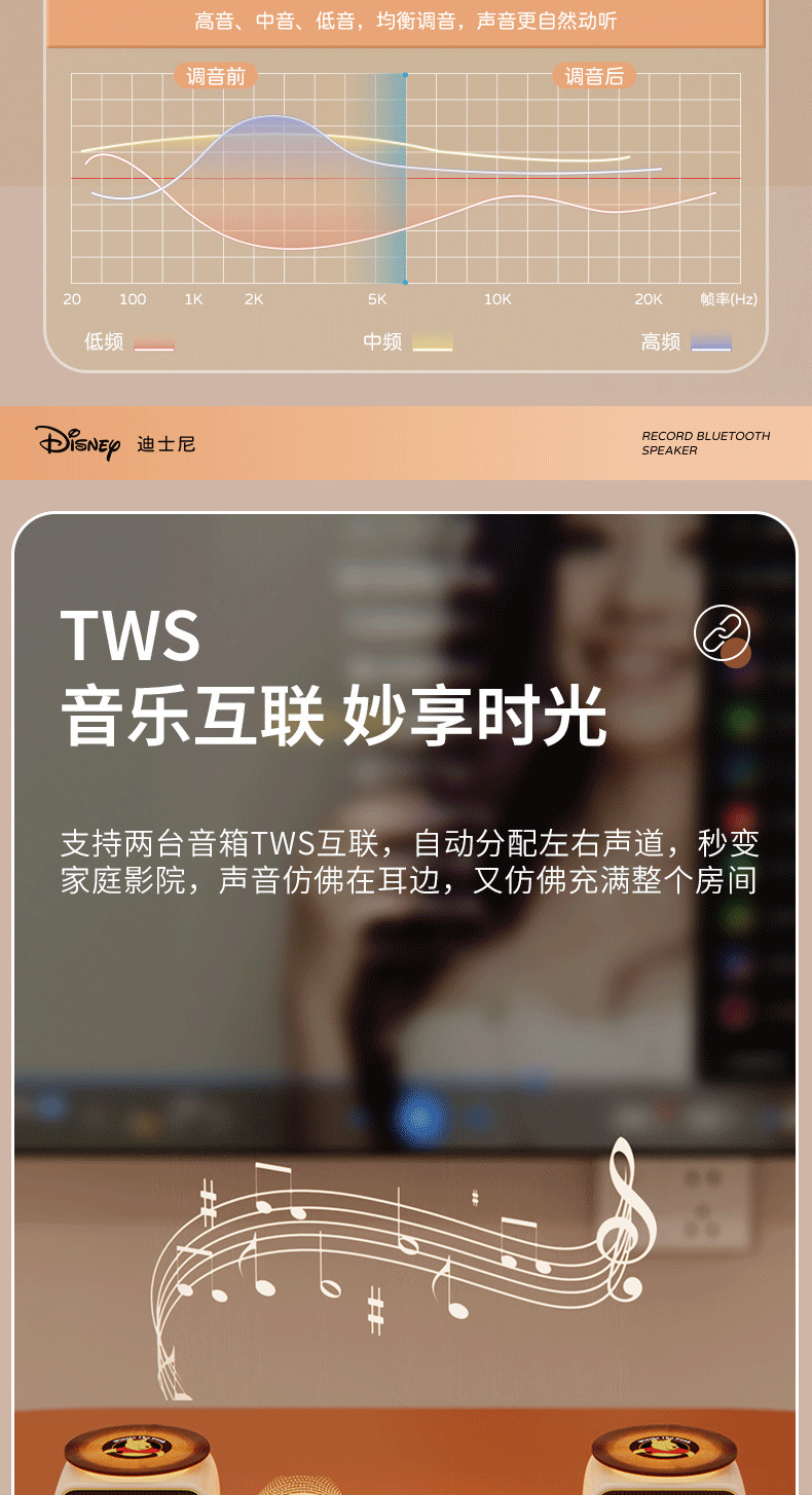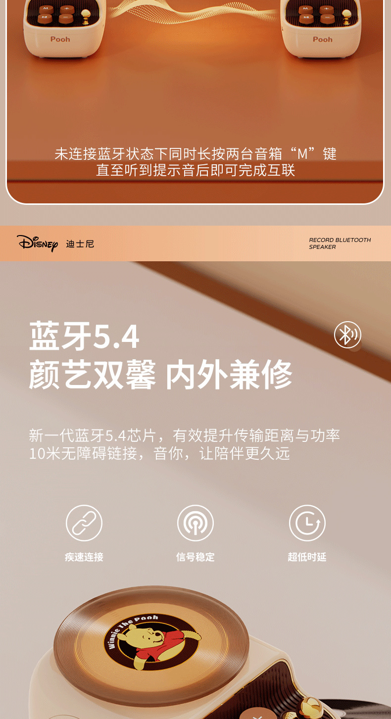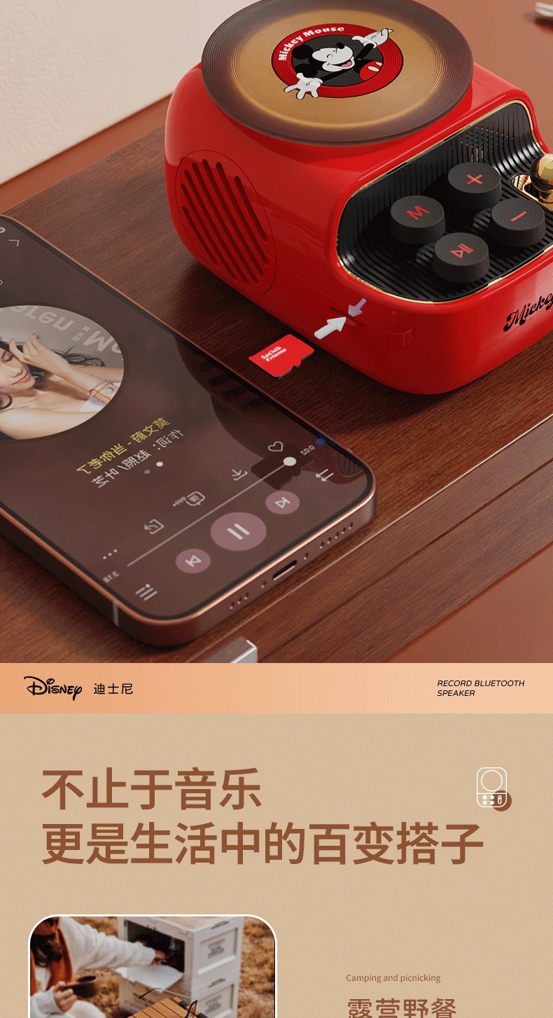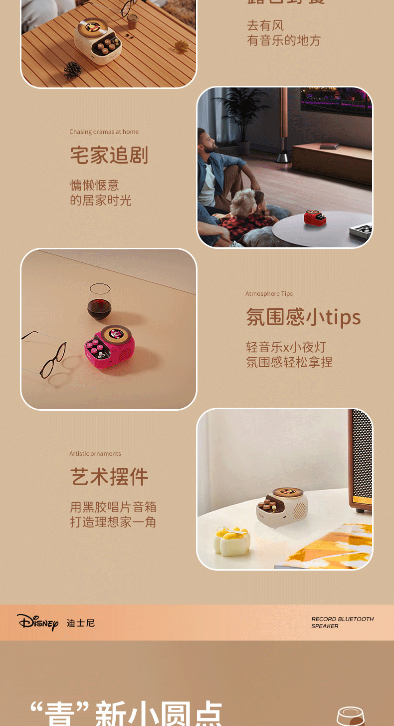 디즈니/디즈니 블랙 플라스틱 레코드 레트로 오디오 무선 블루투스 스피커 서브우퍼 생일 선물 남녀공용