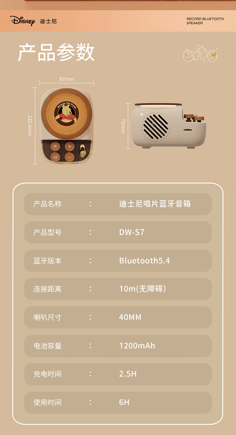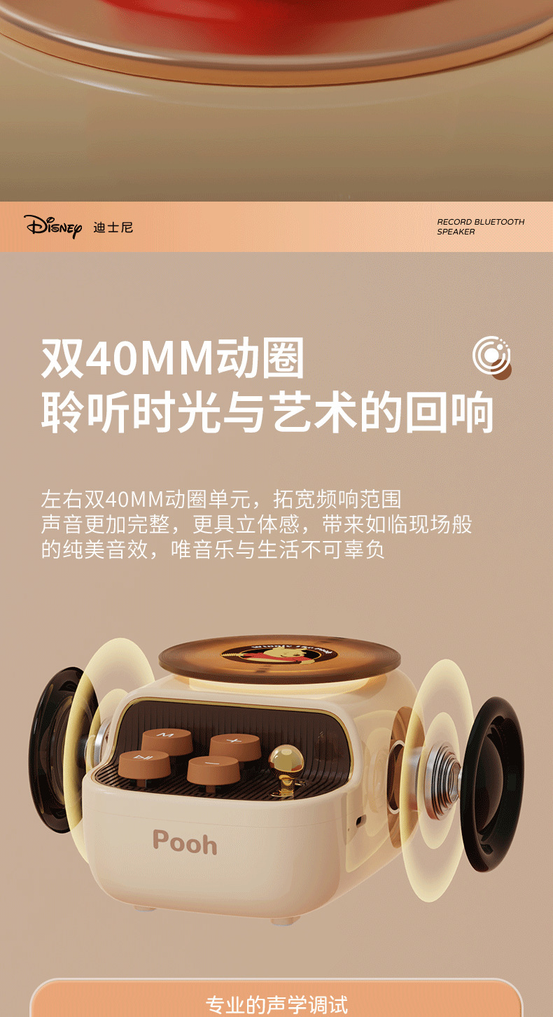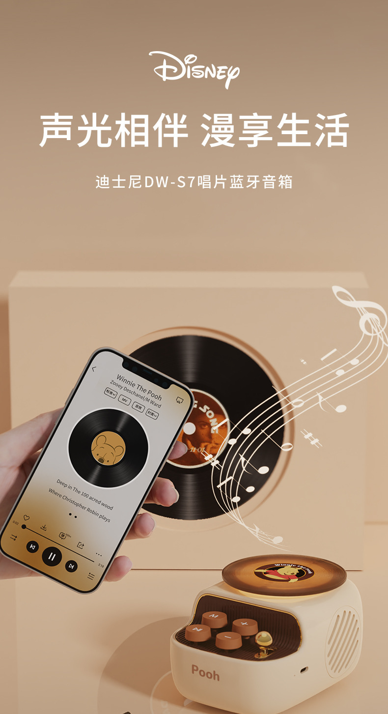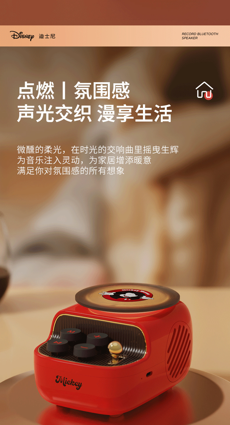 디즈니/디즈니 블랙 플라스틱 레코드 레트로 오디오 무선 블루투스 스피커 서브우퍼 생일 선물 남녀공용스토어 가기