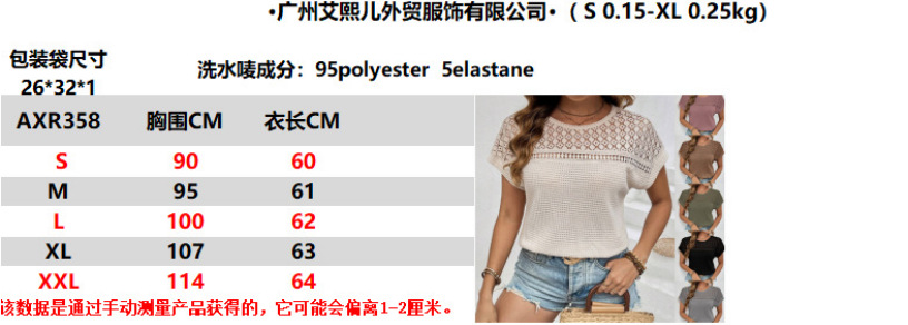 2025 유럽과 미국 아마존 국경 여자 여름 새 탑 어깨 네트 할로우 레이스 올 매치 반팔 티셔츠스토어 가기