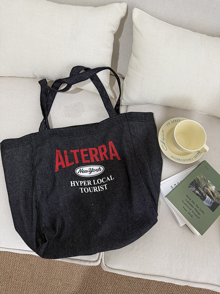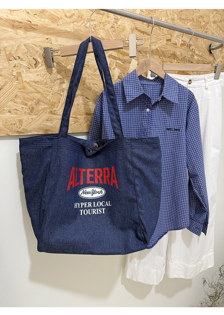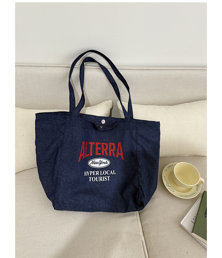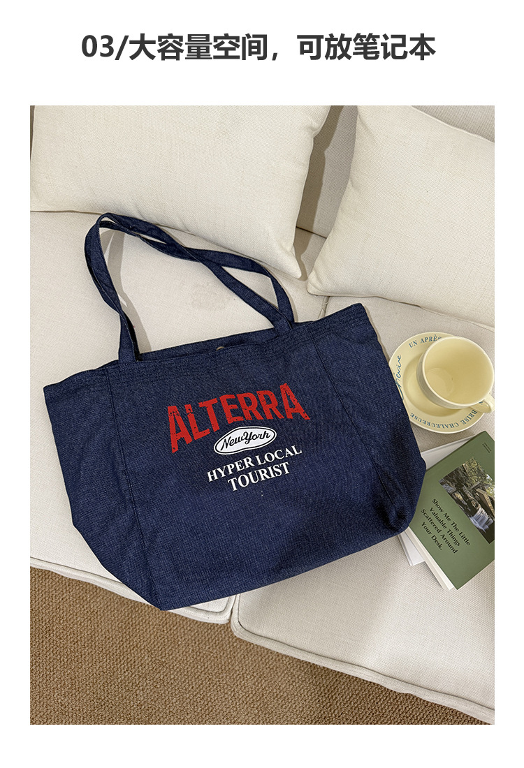 2025春夏新款美式复古牛仔帆布包包字母刺绣单肩包托特包布包斜跨